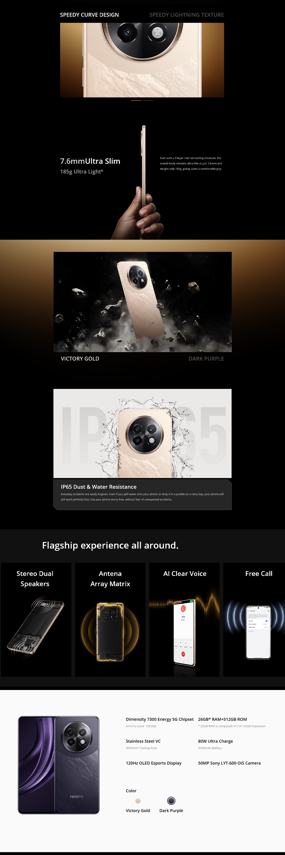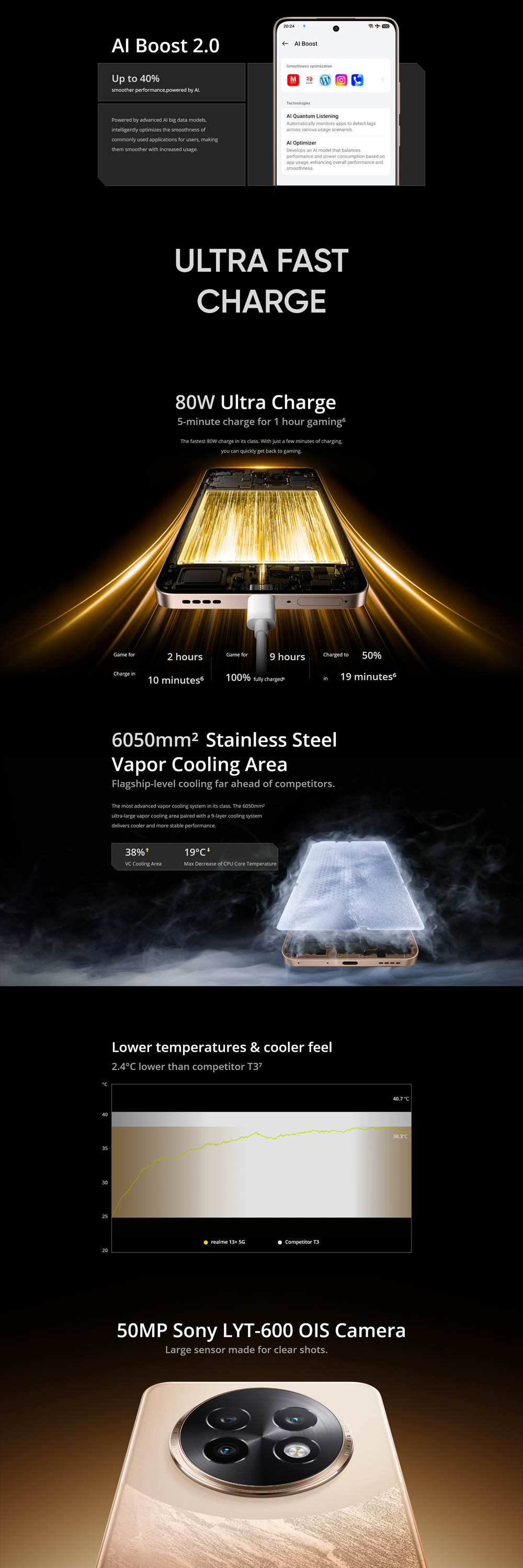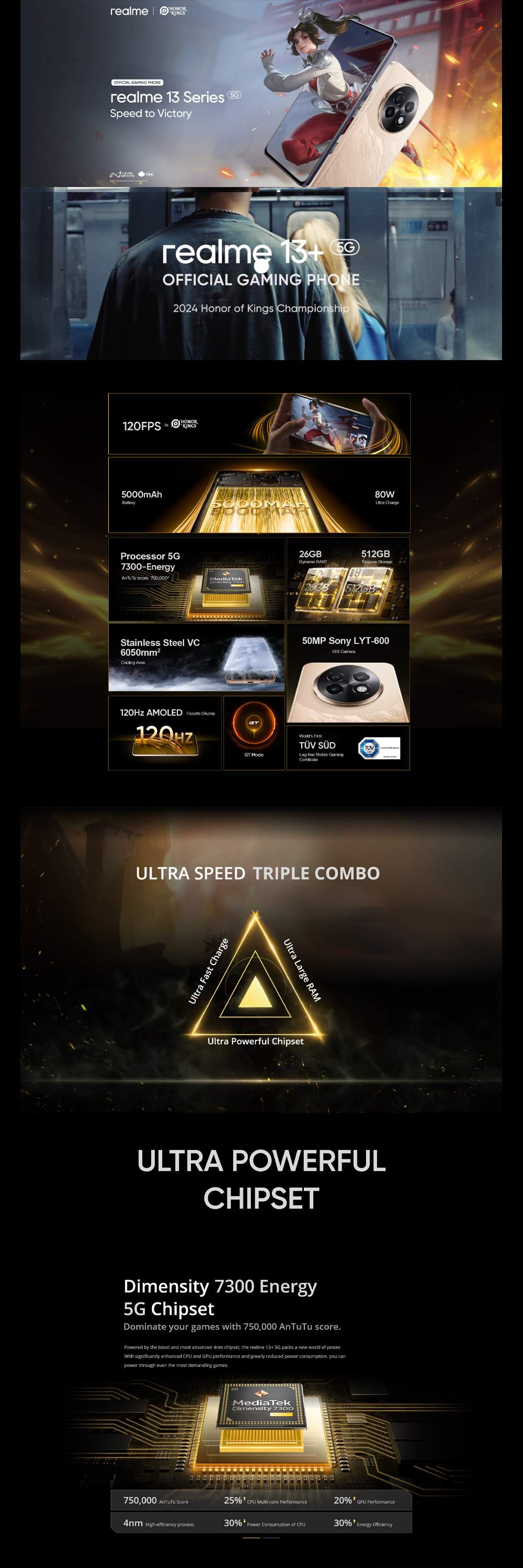 realme 13+ 5G 12GB+256GB/ 12GB+512GB | Android 14, Realme UI 5.0 | MediaTek Dimensity 6300 5G | 5000mAh, 80W Ultra Charge