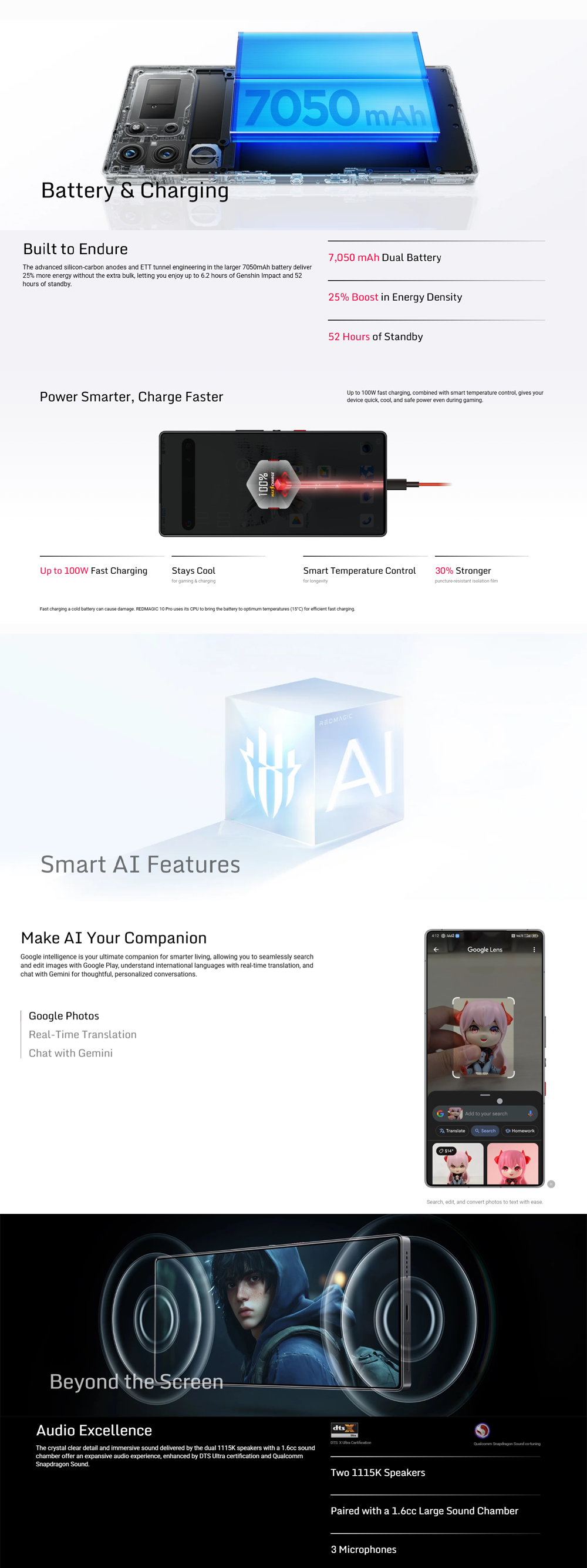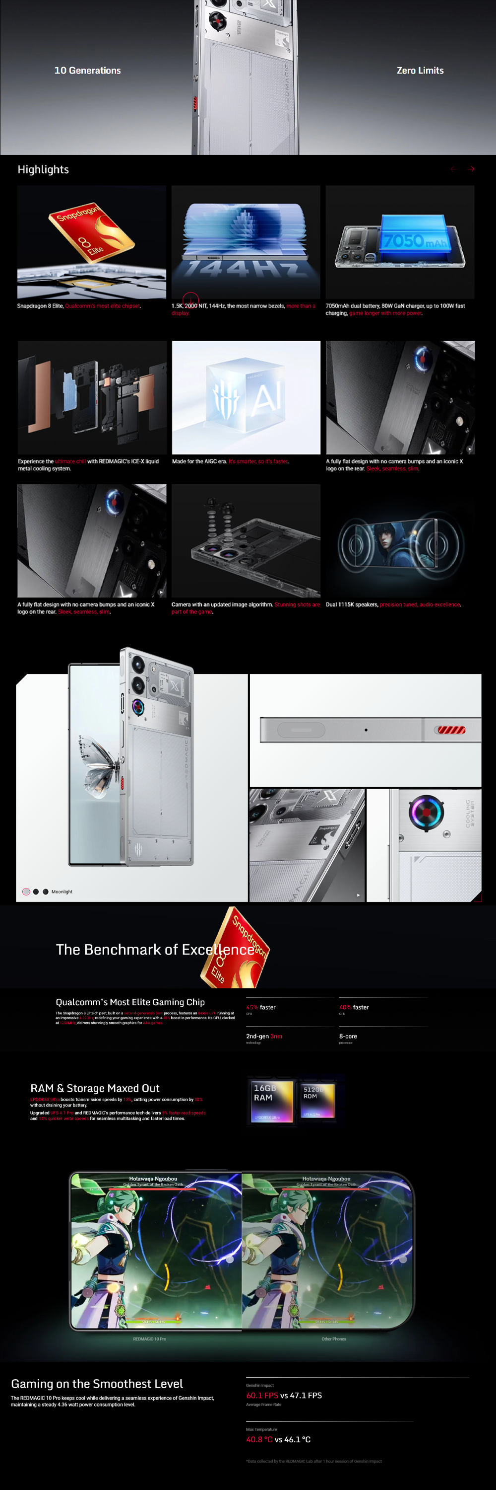 REDMAGIC 10 Pro | Battery 7050 mAh, 100W fast charging | 1.5K All-Screen Display with 144Hz | Snapdragon 8 Elite