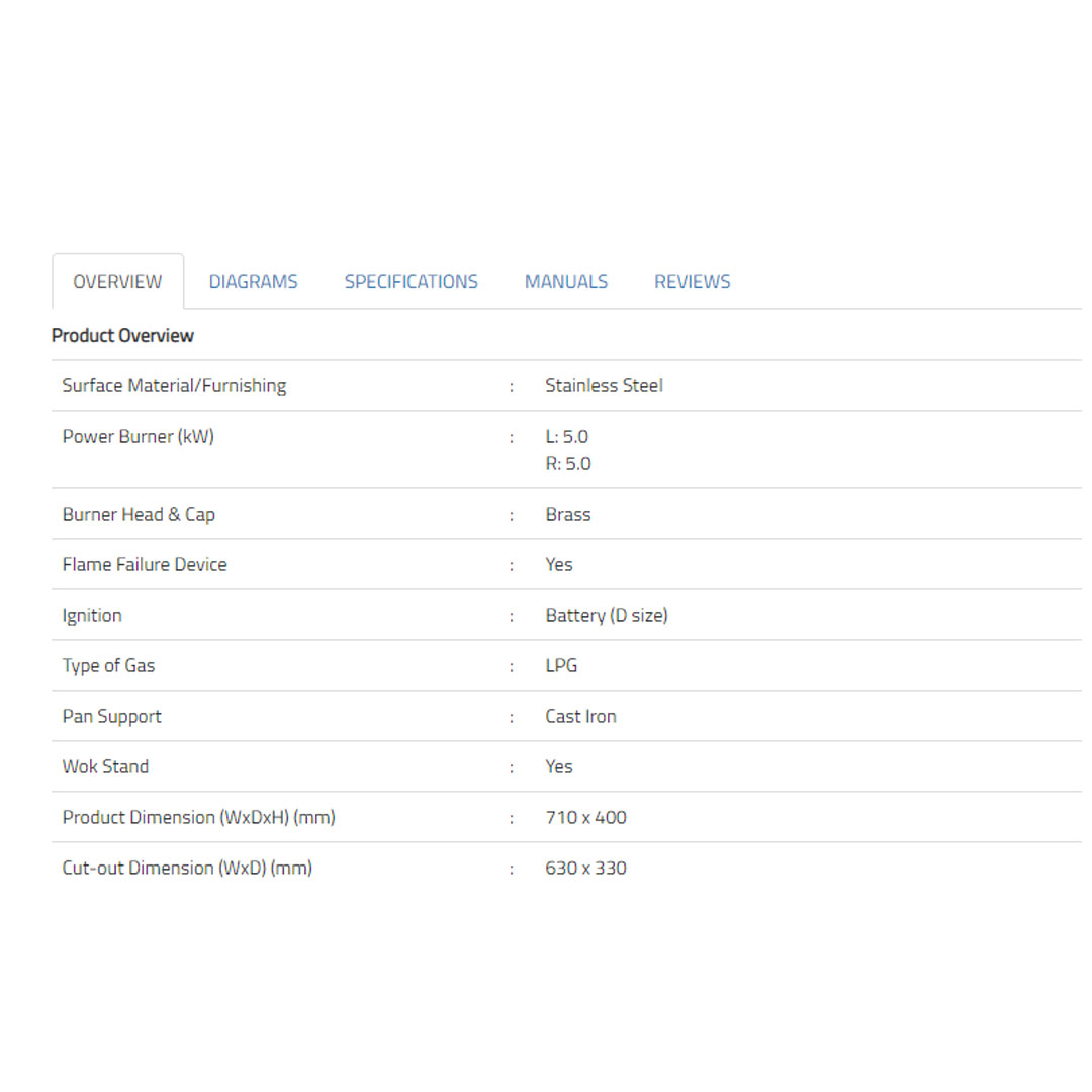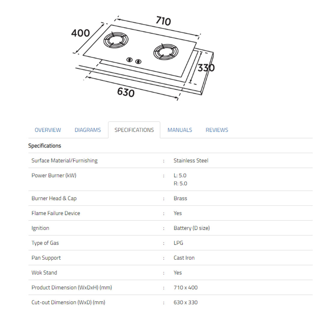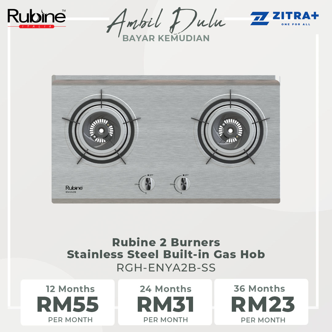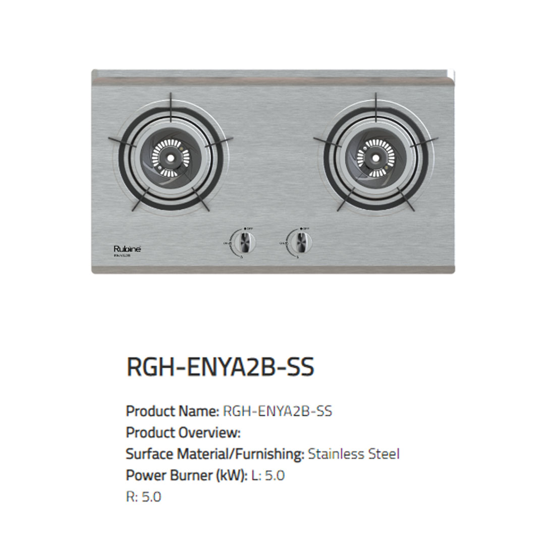 Rubine 2 Burners Stainless Steel Built-in Gas Hob RGH-ENYA2B-SS | Brass and Stainless Steel Burner Head & Cap | Cast Iron Pan Support | With Battery Ignition | Hob with 1 Year Warranty
