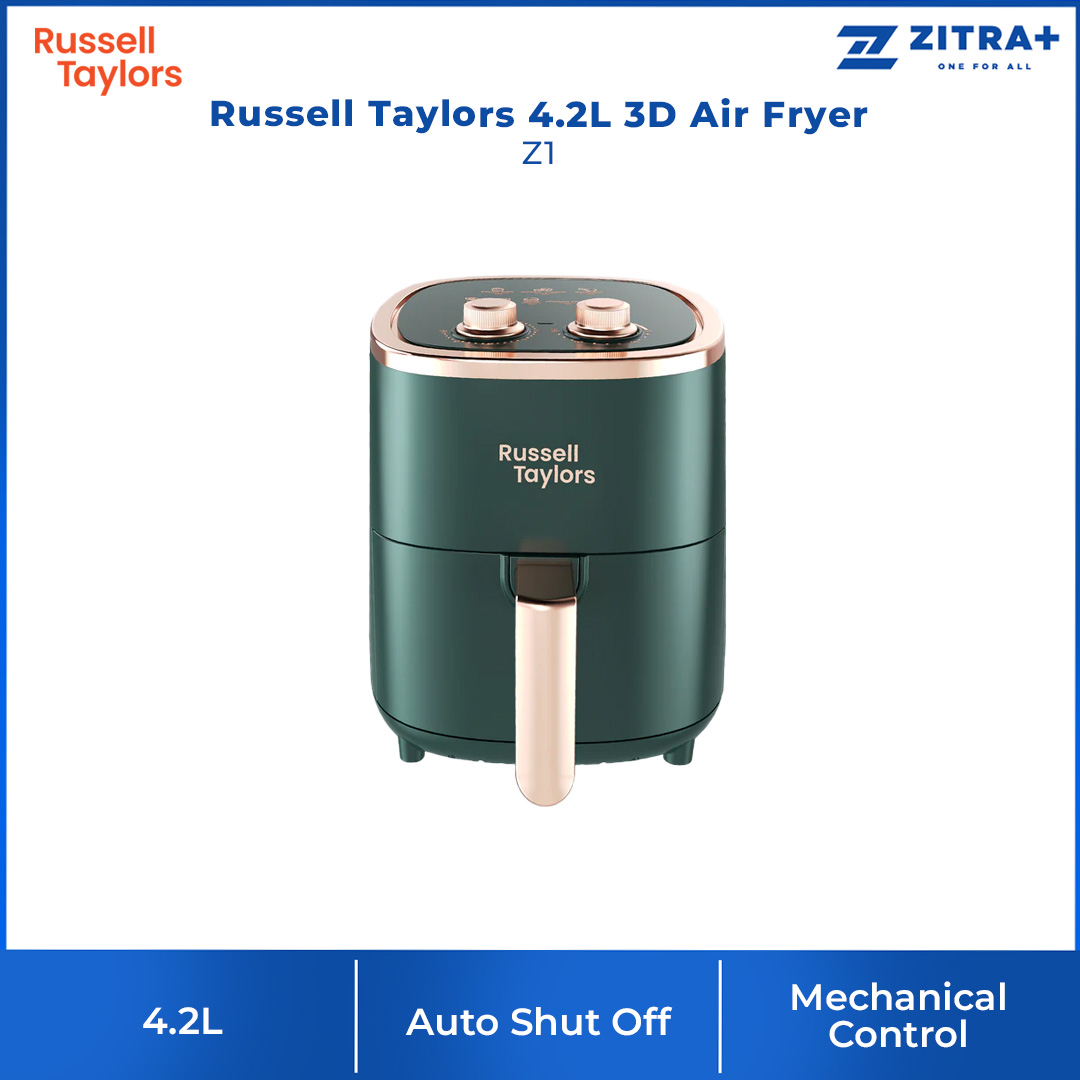 Russell Taylors 4.2L 3D Air Fryer Z1 | 360° Rapid Air Circulation Technology | Non Stick Pan | Temperature 80-200ºC |  Mechanical Control | Auto Shut Off | Power: 1,200W | Air Fryer with 2 Year Warranty
