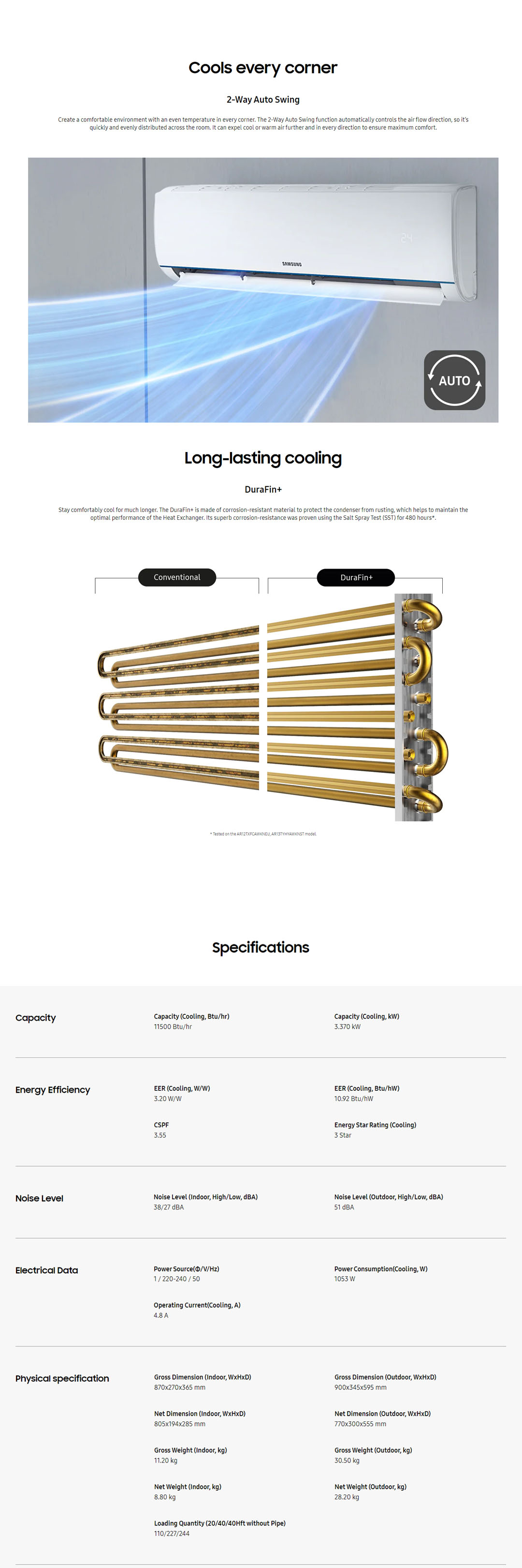 SAMSUNG 1.5HP S-Essential Air Conditioner AR12TGHQABUNME & AR12TGHQABUXME | HD Filter | Fast Cooling | Air Conditioner with 1 Year General & 5 Year Compressor Warranty
