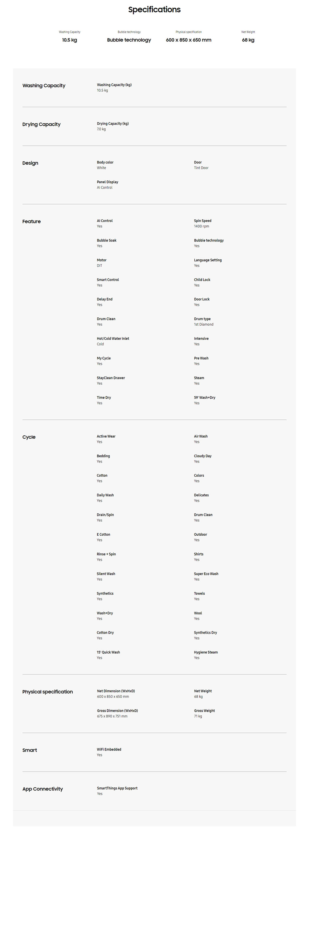 Samsung 10.5KG Wash & 6KG Dry Front Load Inverter Washer Dryer WD10T504DBE/FQ | Intelligent Wash | Hygienic Cleaning | AI Control Eco Bubble | Washer Dryer with 1 Year General & 11 Year Compressor Warranty