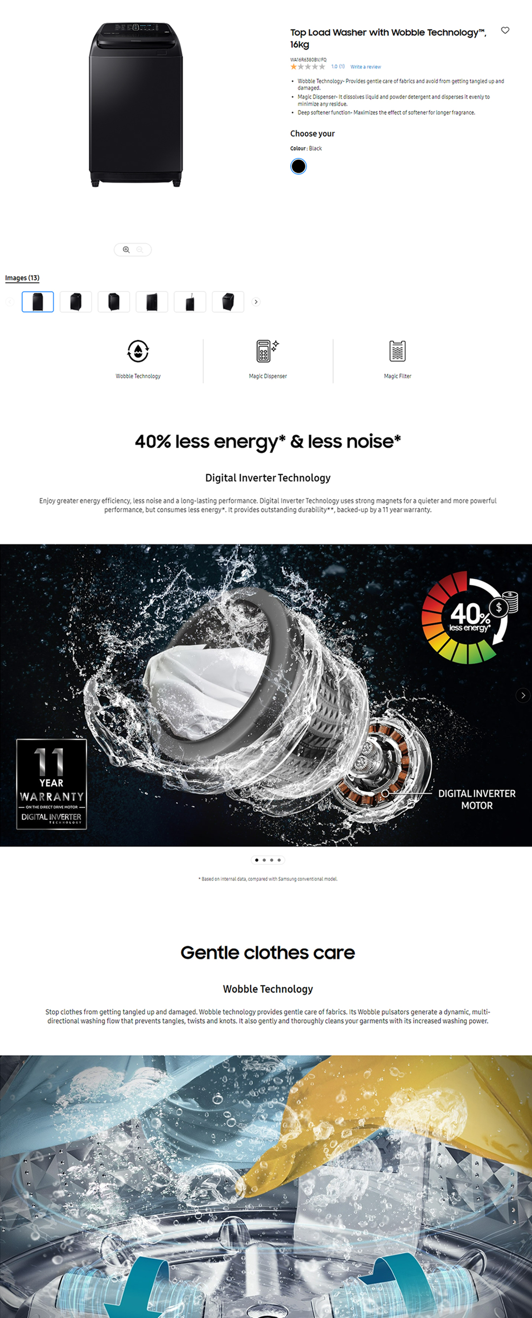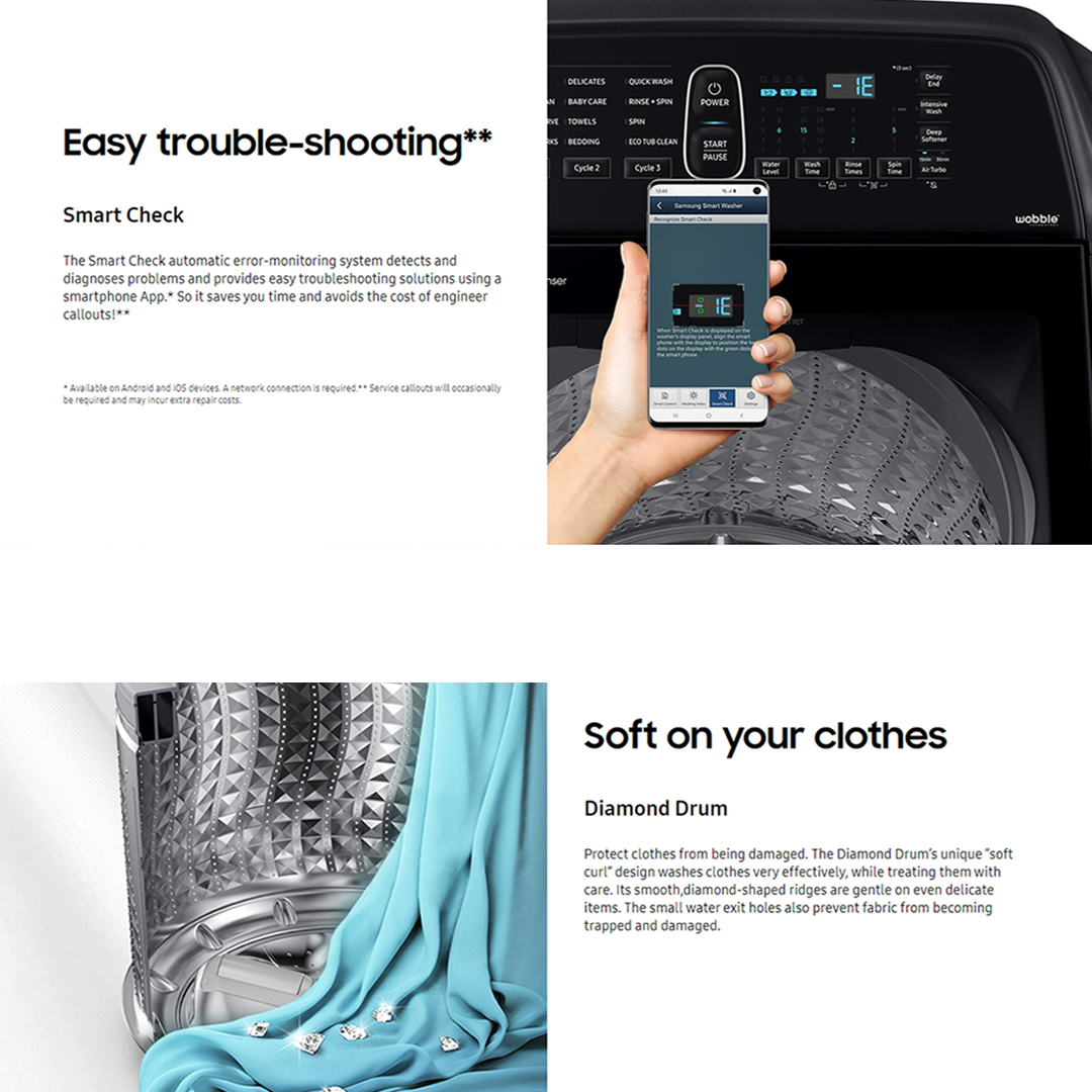 SAMSUNG 16KG Top Load Inverter Washing Machine WA16R6380BV/FQ | Wobble Technology | Magic Dispenser | Deep softener function | Washing Machine with 1 Year General & 11 Year Motor Warranty