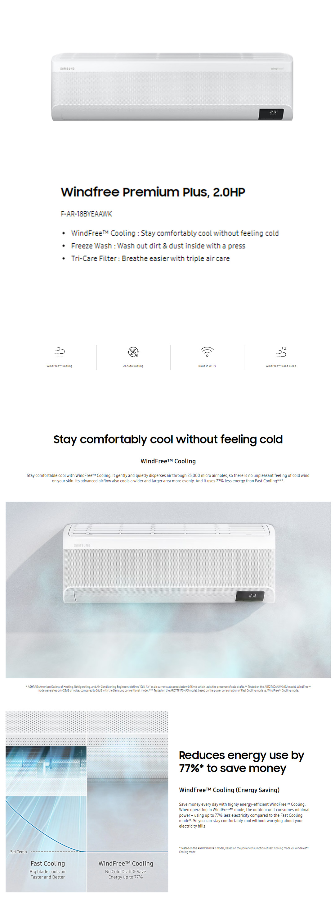 SAMSUNG 2HP R32 Digital Inverter Wind Free Premium Plus Wall Mount Air Conditioner AR18BYEAAWKNME/AR18BYEAAWKXME | WindFree Cooling | AI Auto Cooling | Fast Cooling | Auto Clean | 4Way Swing | Triple Protection | Air Conditioner with 1 Year Warranty