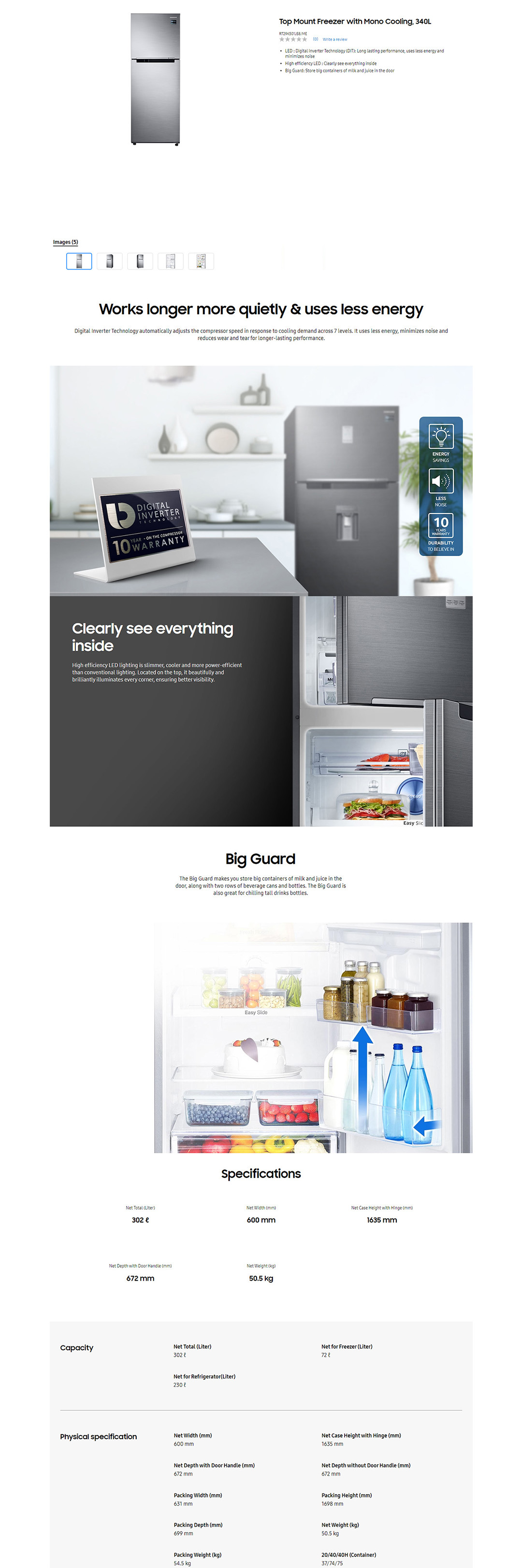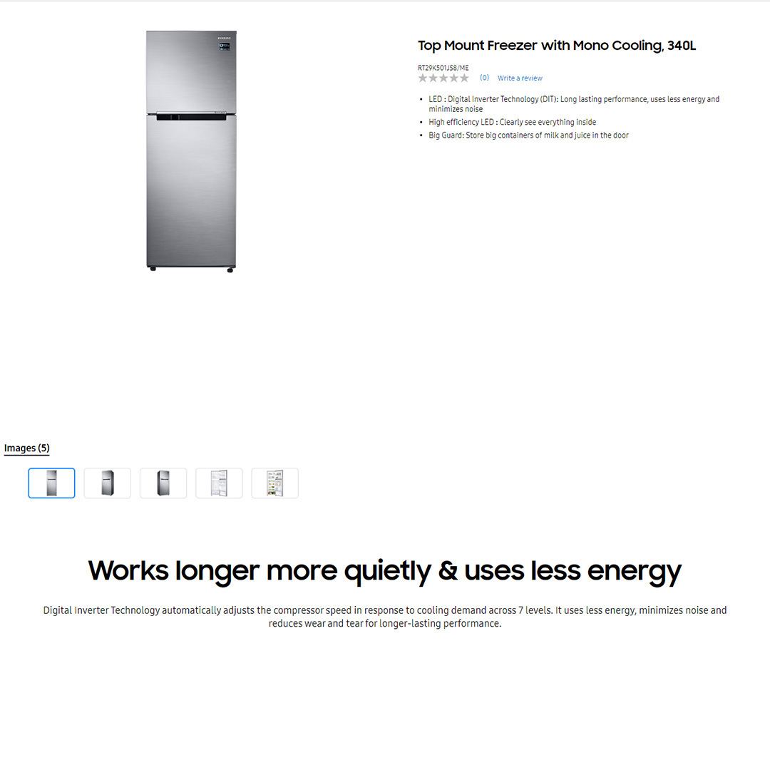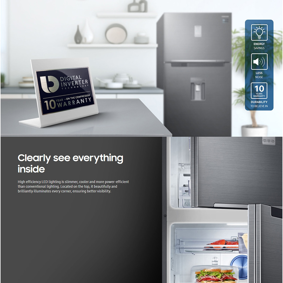 SAMSUNG 340L 2 Doors Top Mount Inverter Refrigerator RT29K501JS8/ME | Mono Cooling | High efficiency LED lighting | Refrigerator with 1 Year General & 10 Year Compressor Warranty