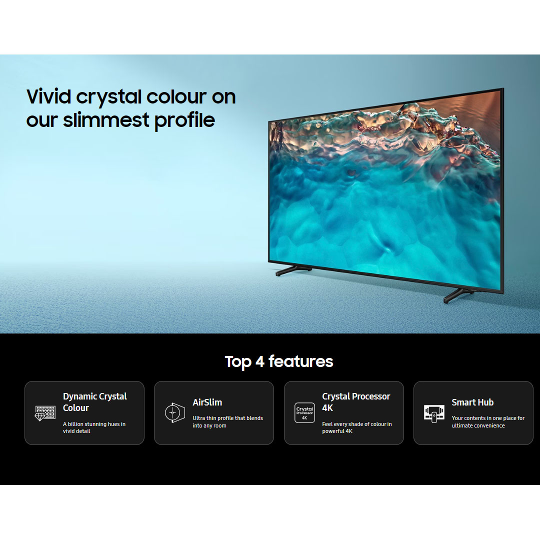 SAMSUNG 50" 4K UHD Smart LED TV UA50BU8000KXXM | Netflix | YouTube | Web Browser | SmartThings | Media Home | Bluetooth | HDMI | USB | LED TV with 2 Years Warranty