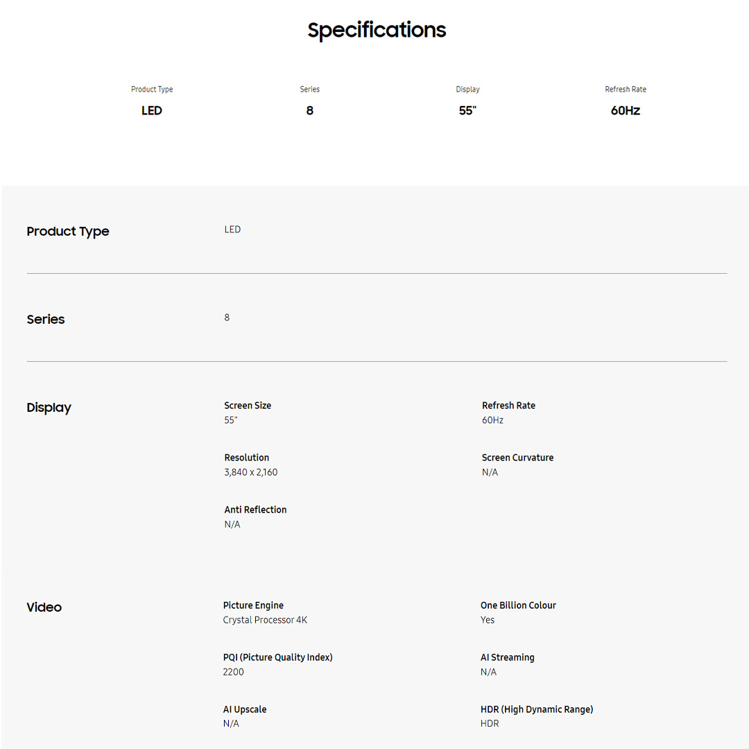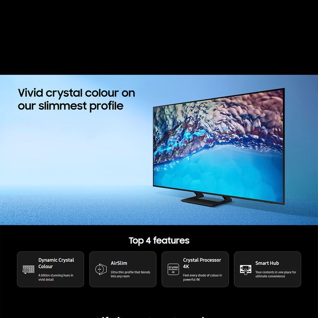 SAMSUNG 55" 4K Crystal UHD Smart LED TV UA55BU8500KXXM | USB | HDMI | Eco Sensor | HDR 10+ | Q-Symphony | Bluetooth | SmartThings | Web Browser | Microsoft 365 | Ethernet LAN | Digital Audio Out | Smart TV with 2 Year Warranty