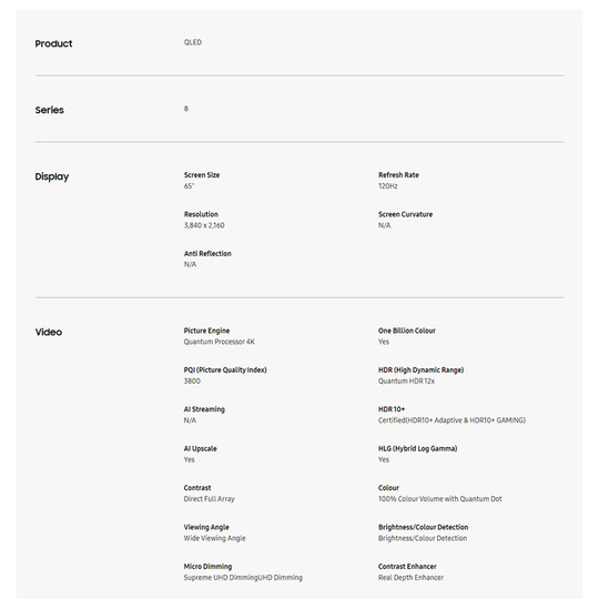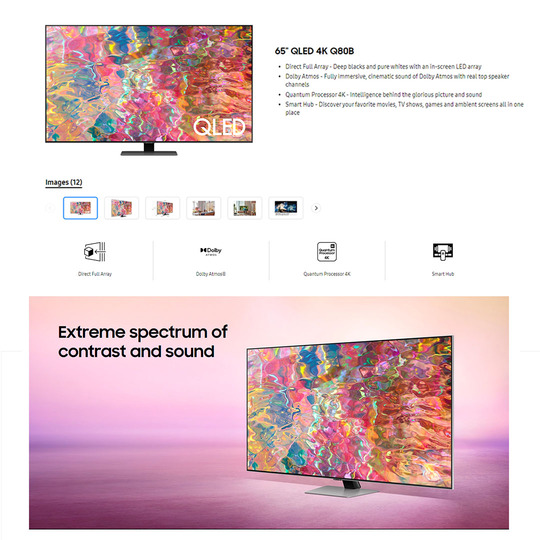 SAMSUNG 65" 4K UHD Smart QLED TV QA65Q80BAKXXM | Direct Full Array | Dolby Atmos | Quantum Processor 4K | Smart Hub | Video Call Application | Multi View | Motion Xcelerator Turbo+ | Smart QLED TV with 2 Year Warranty