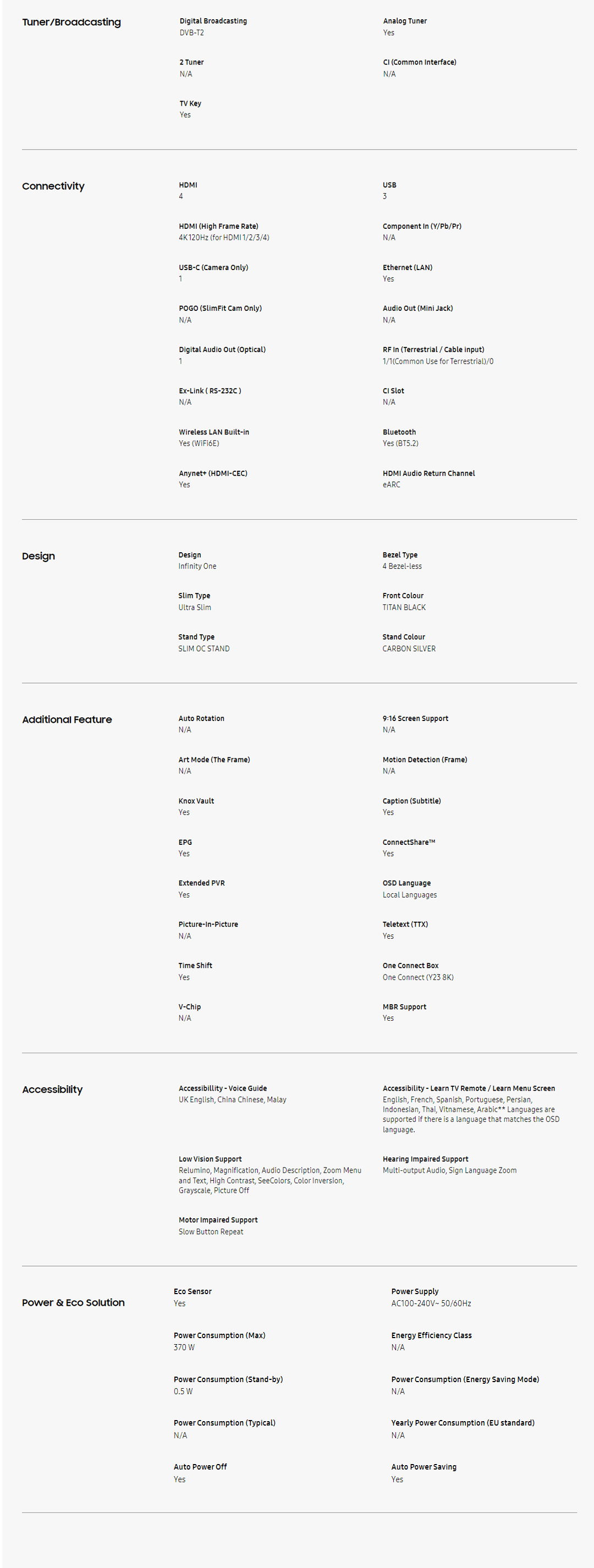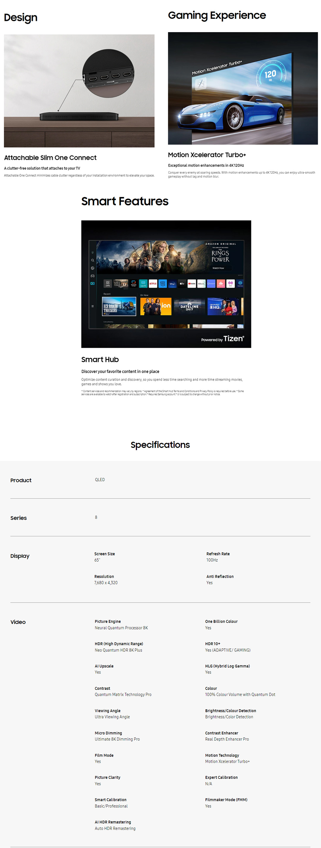 ● Tizen™ Smart TV ● App Casting ● Wireless Dex ● NFT
