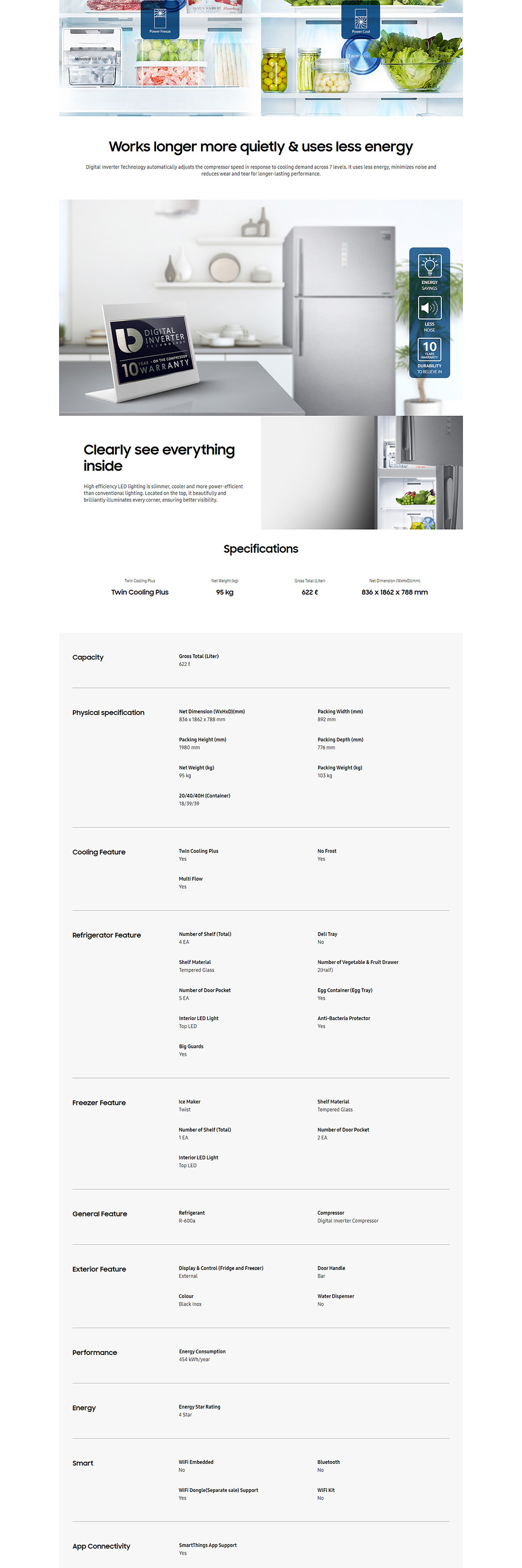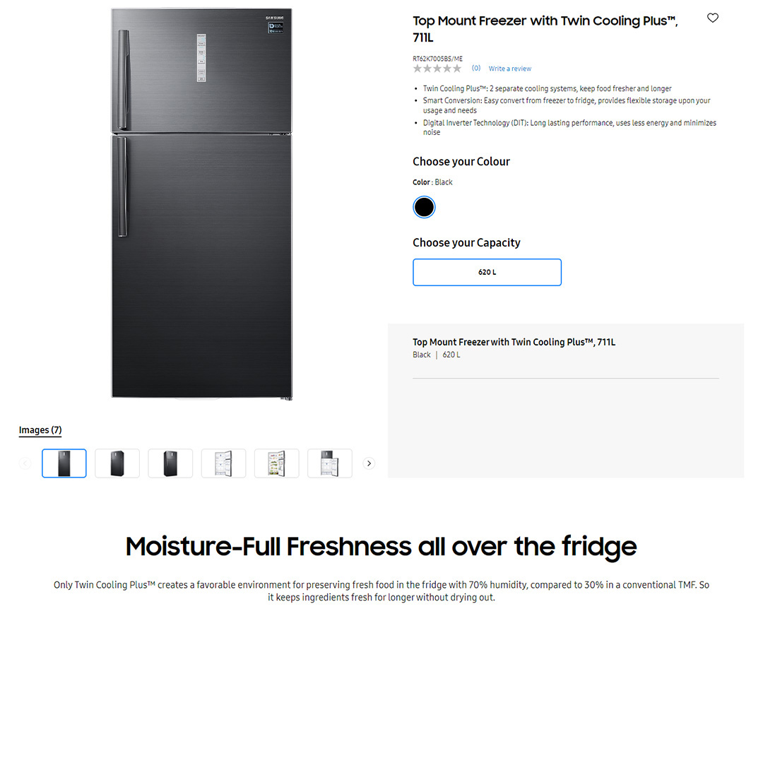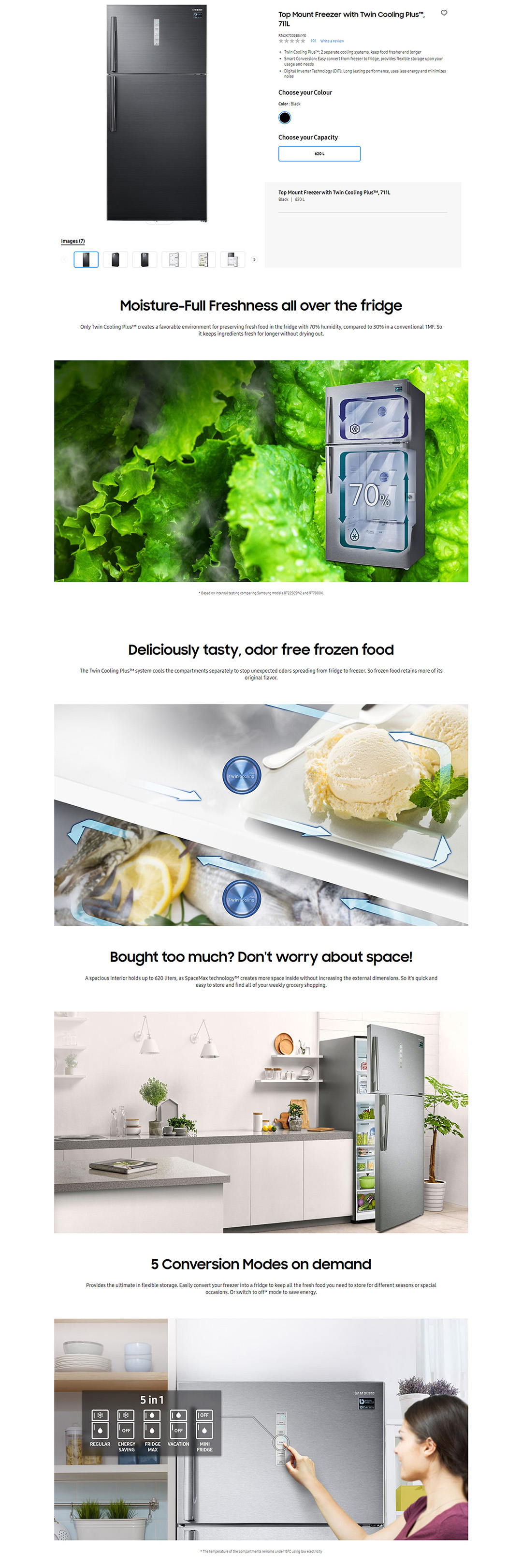 SAMSUNG 711L 2 Doors Top Mount Inverter Refrigerator RT62K7005BS/ME | Twin Cooling Plus | Moisture-Full Freshness | 5 Conversion Modes | Refrigerator with 1 Year General & 10 Year Compressor Warranty