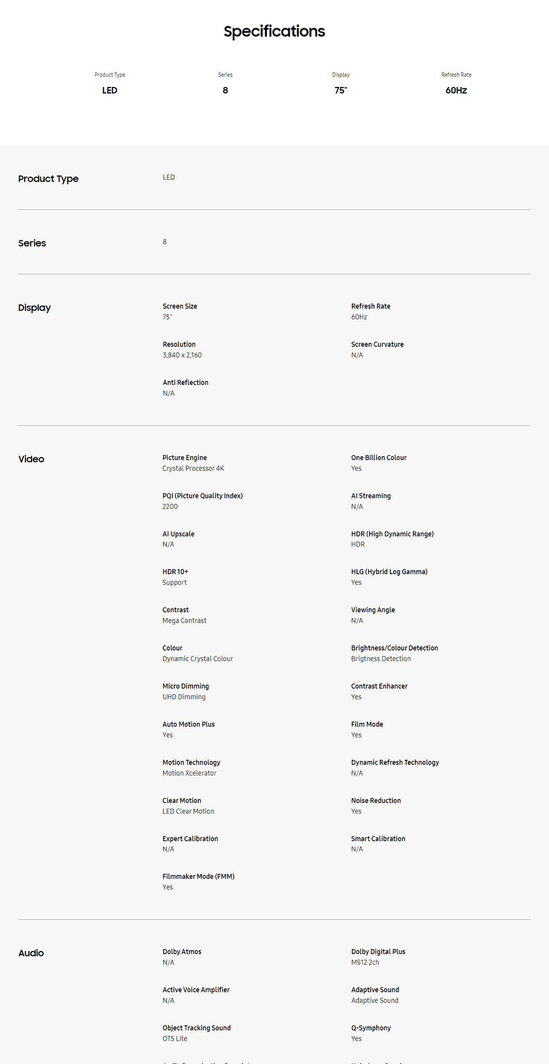 SAMSUNG 75" 4K Crystal UHD Smart LED TV UA75BU8500KXXM | USB | HDMI | Eco Sensor | HDR 10+ | Q-Symphony | Bluetooth | SmartThings | Web Browser | Microsoft 365 | Ethernet LAN | Digital Audio Out | Smart TV with 2 Year Warranty