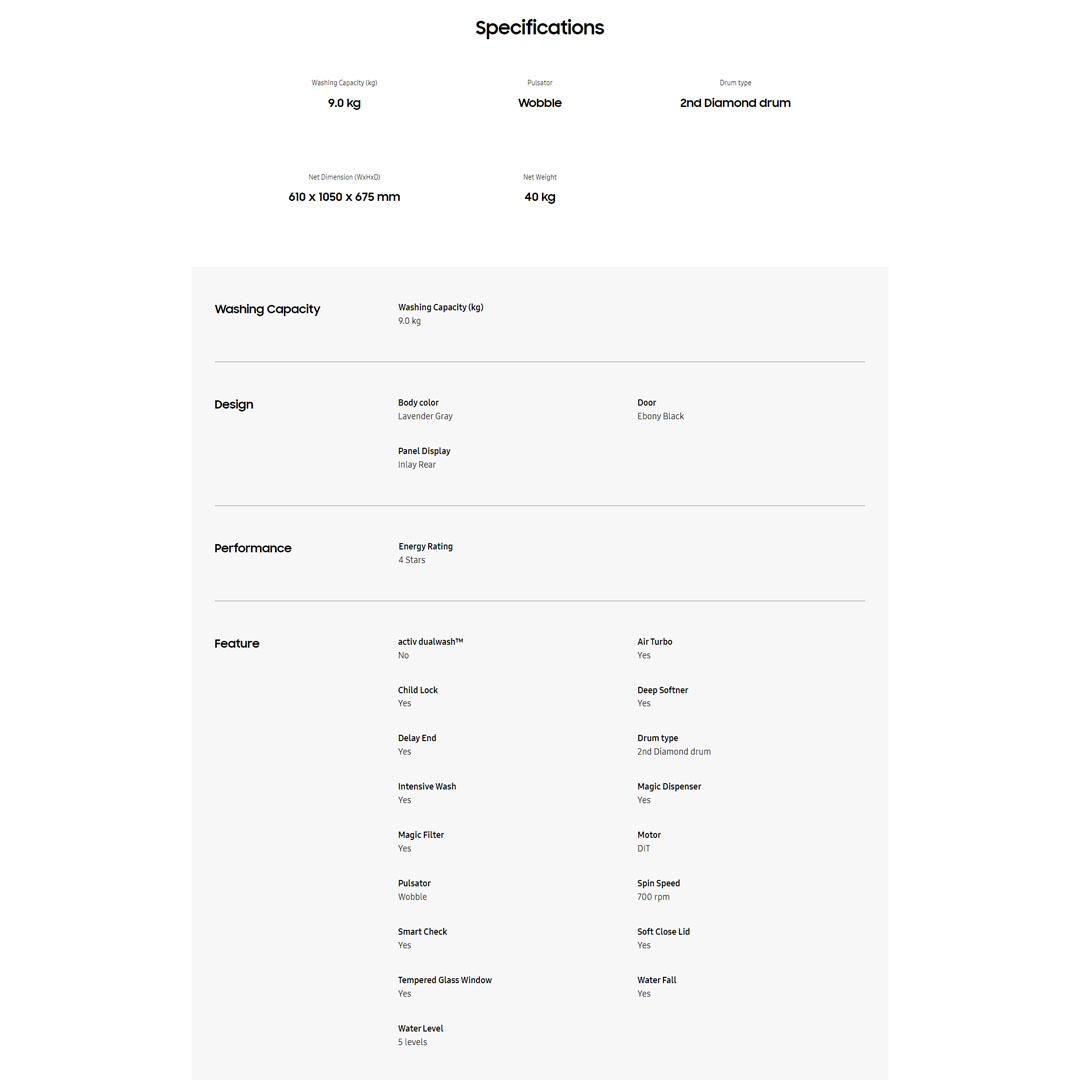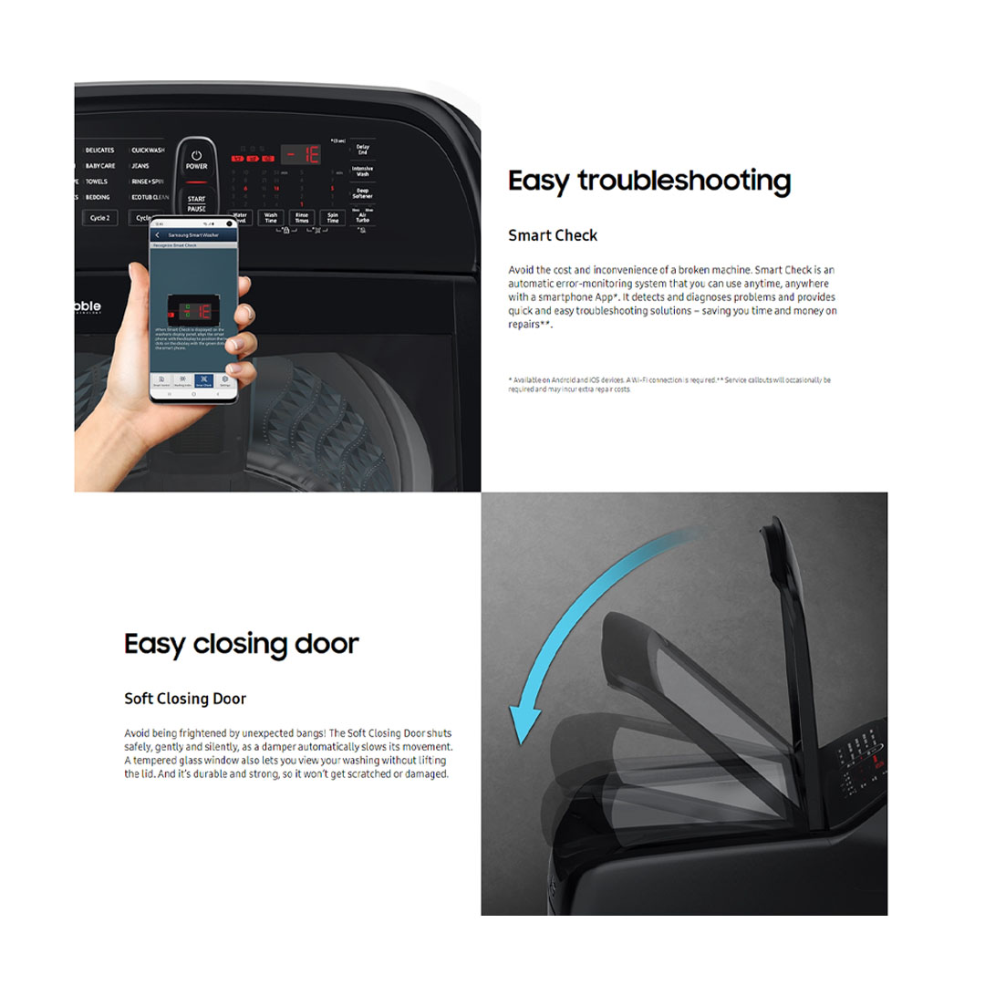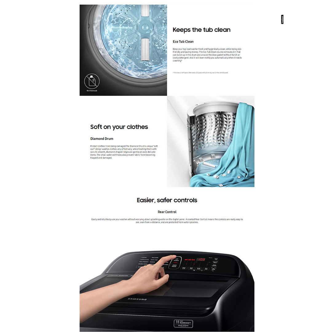 SAMSUNG 9KG Top Load Inverter Washing Machine WA90T5260BY/FQ | Wobble Technology | Magic Dispenser | Magic Filter | Washing Machine with 2 Year General & 11 Year Motor Warranty