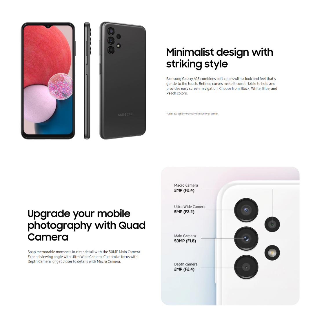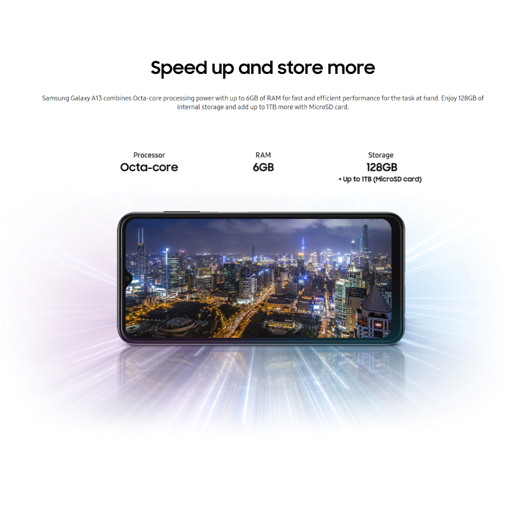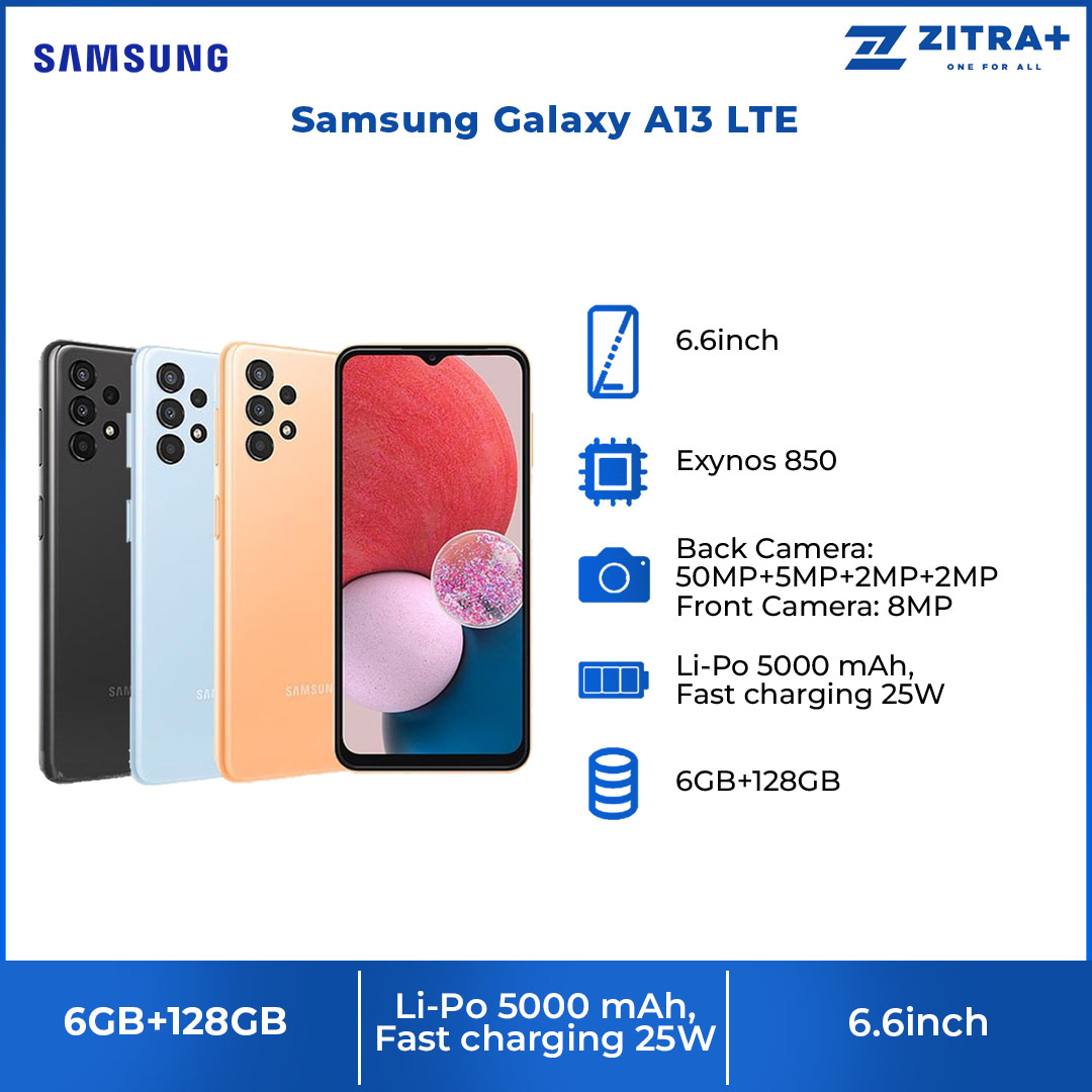 SAMSUNG Galaxy A13 LTE | 6GB+128GB | Exynos 850 (8nm) | 6.6" PLS TFT LCD Display | 50MP Main Camera | 15W Super Fast Charging | 5000mAh Battery | Smartphone with 1 Year Warranty