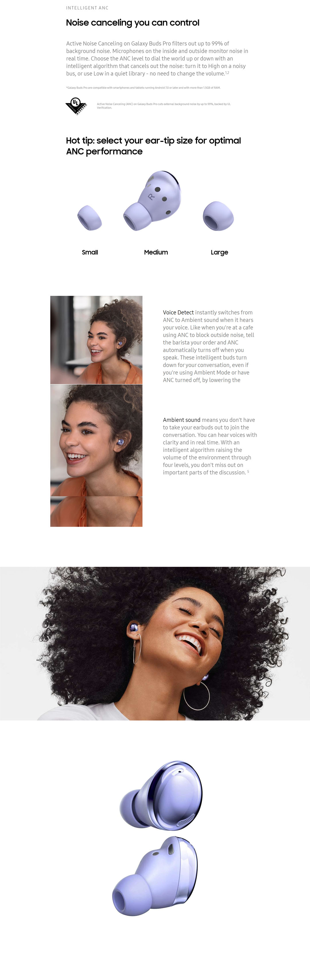 · Active Noise Canceling · Intelligent ANC · 2-way speakers with sound by AKG · Auto Switch