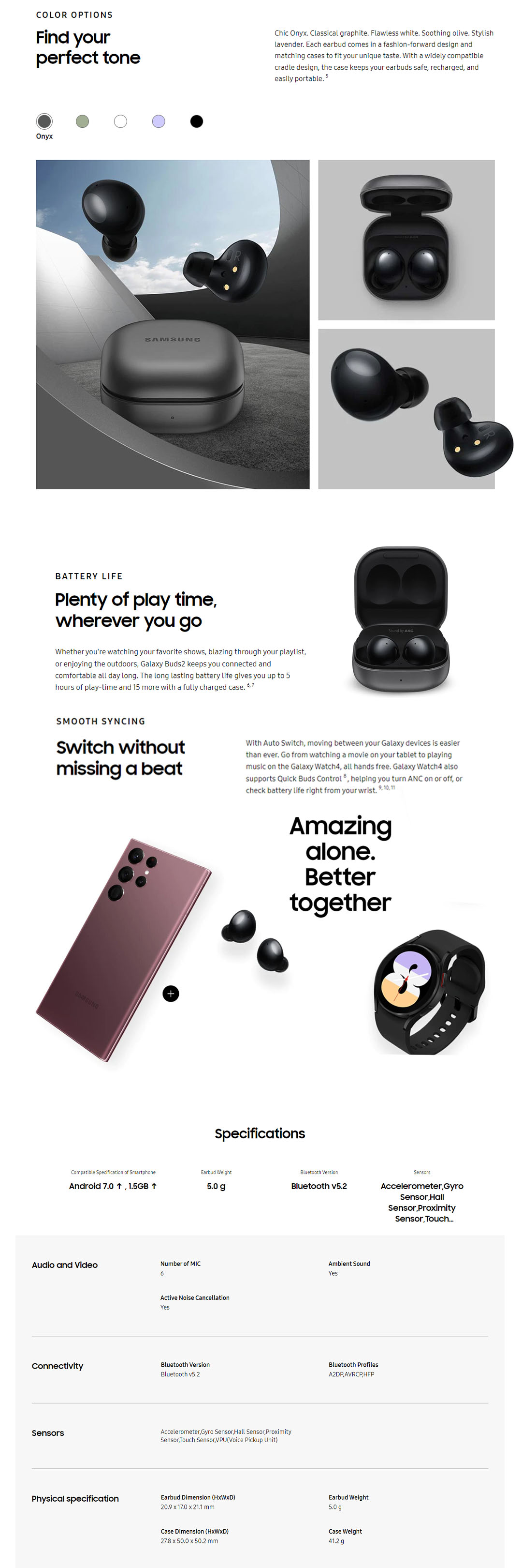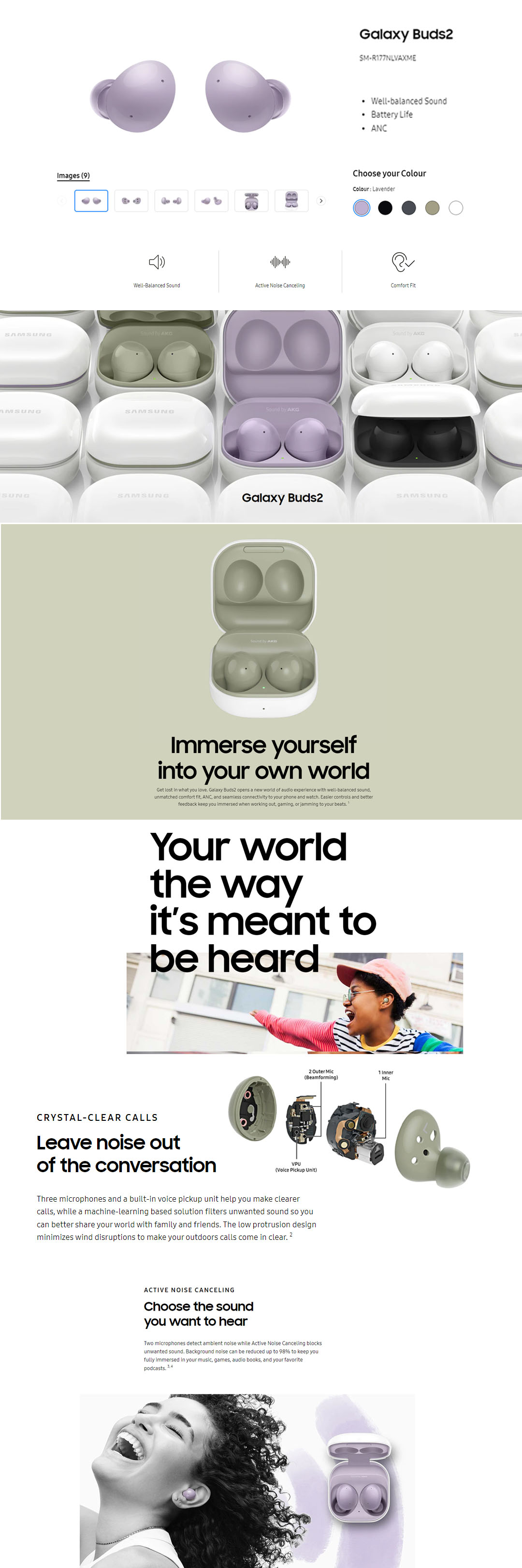 SAMSUNG Galaxy Buds2 | Active Noise Canceling | Well-balanced Sound | Dolby Atmos | Earbuds with 1 Year Warranty