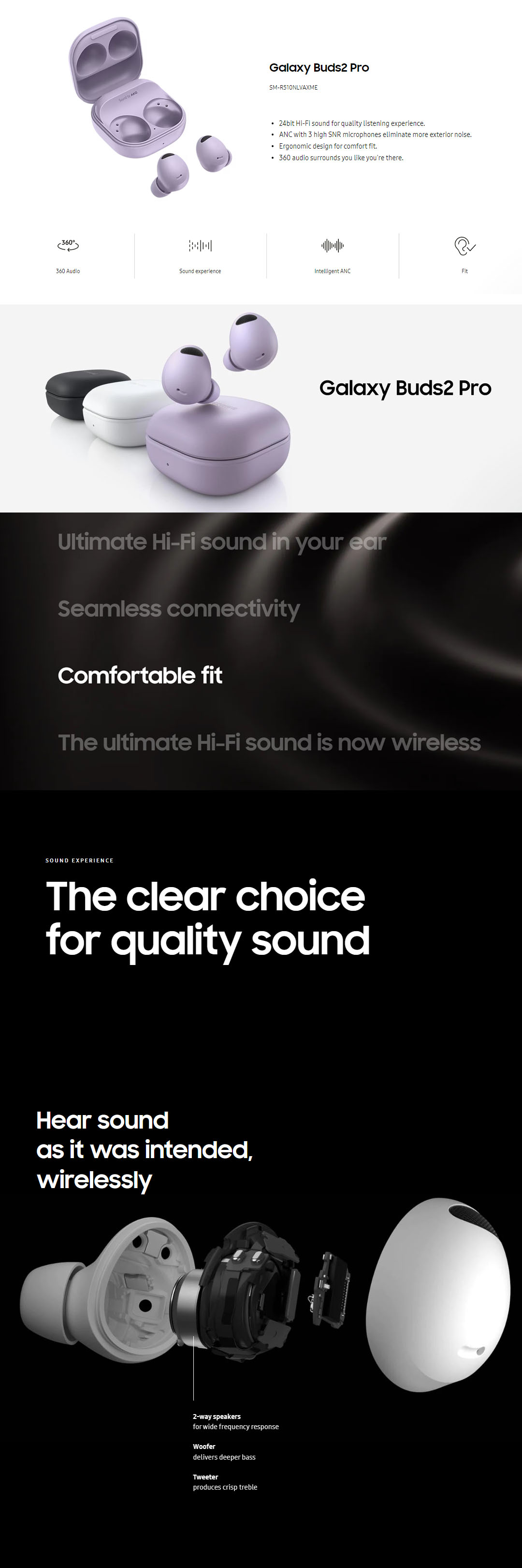 SAMSUNG Galaxy Buds2 Pro | 360 Audio | Intelligent ANC | Bluetooth v5.3 | Accelerometer | Touch Sensor | IPX7 Water Resistance | Buds with 1 Year Warranty