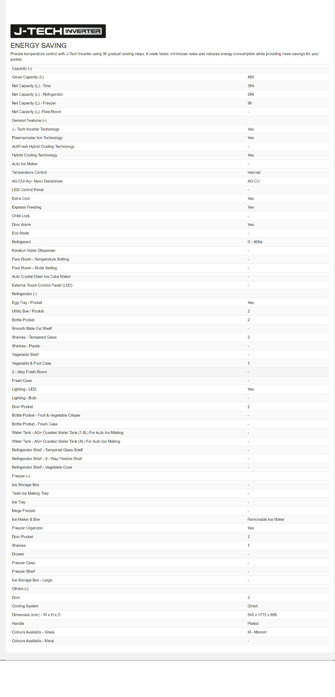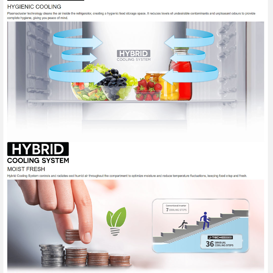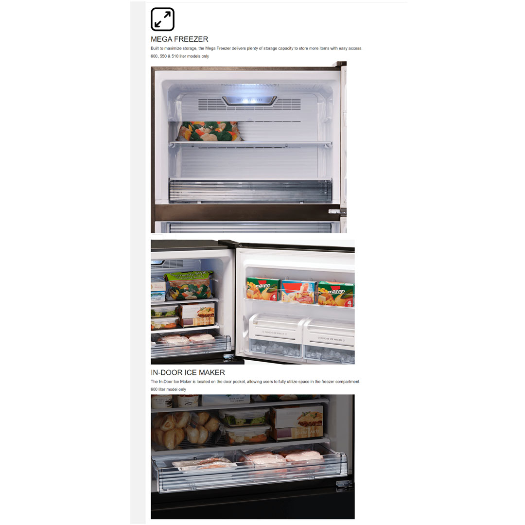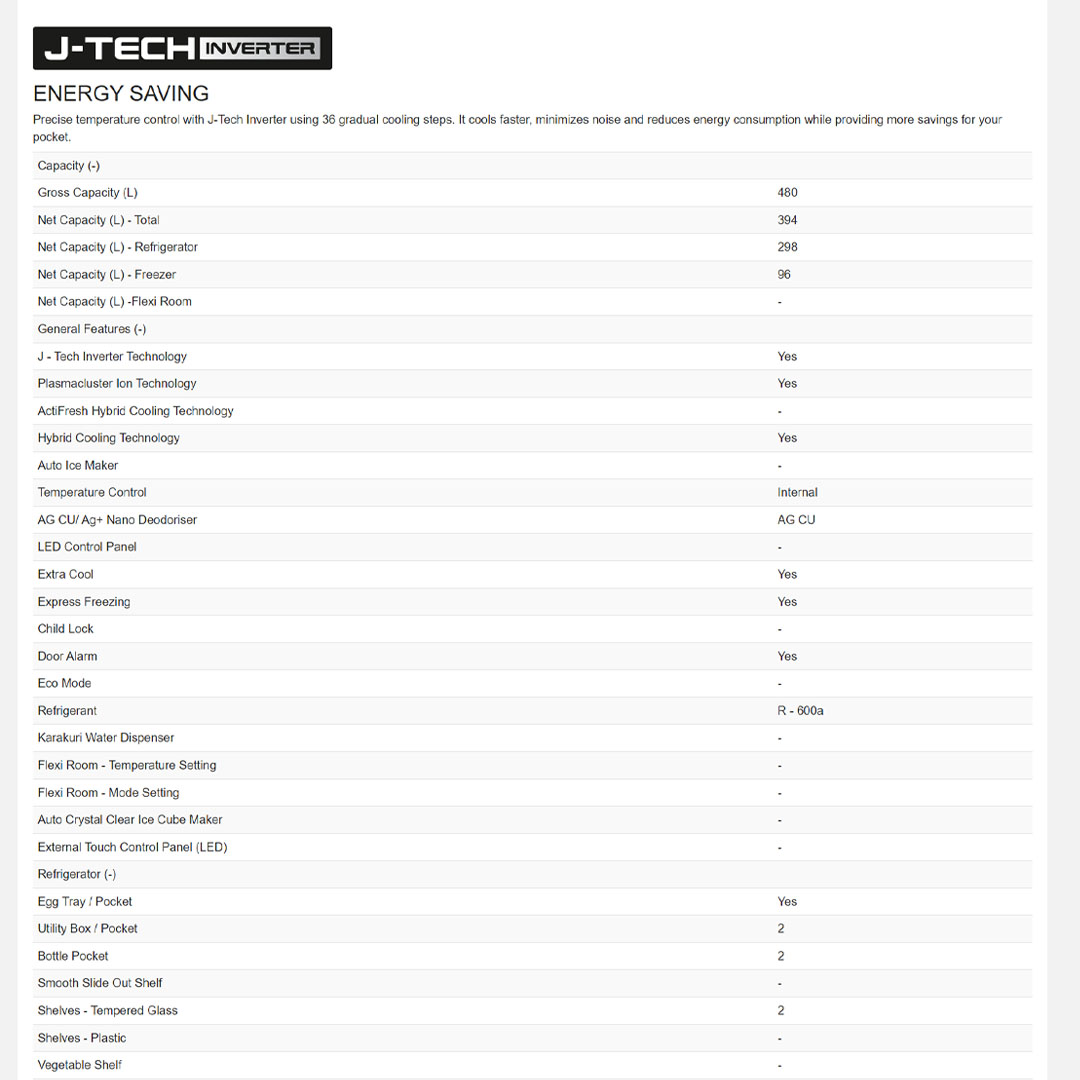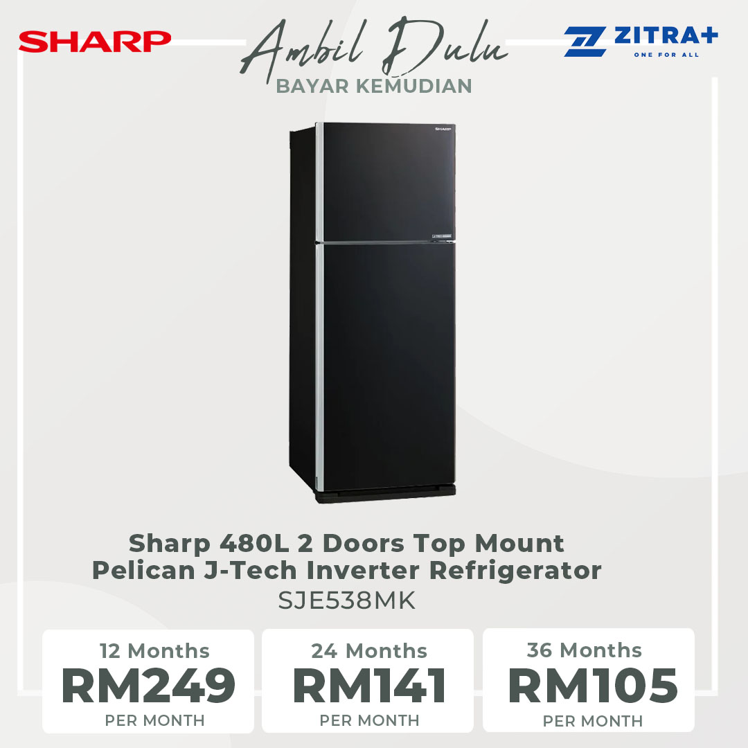 SHARP 480L 2 Door Top Mount J-Tech Inverter Pelican Refrigerator SJE538MK | Hybrid Cooling System | AG CU Nano Deodorizer | Door Alarm | Refrigerator with 1 Year General Warranty & 12 Years Compressor Warranty
