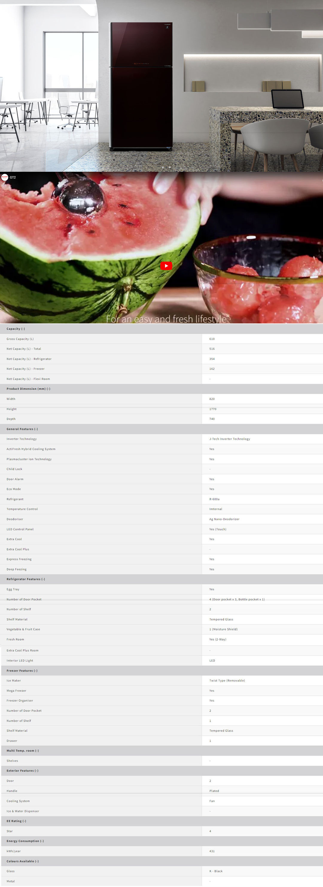 Sharp 610L 2 Doors Top Mount J-Tech Inverter Pelican Refrigerator SJP682MFGK | Plasmacluster Ion Technology | Hybrid Cooling System | AG CU Nano Deodoriser | Express Freezing | Refrigerator with 1 Year General & 12 Year Motor Warranty