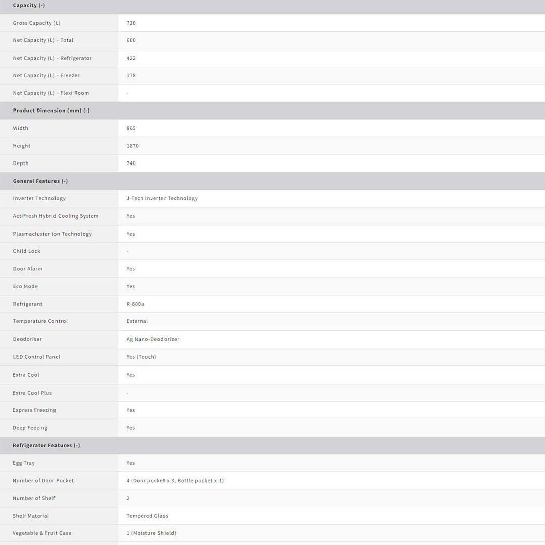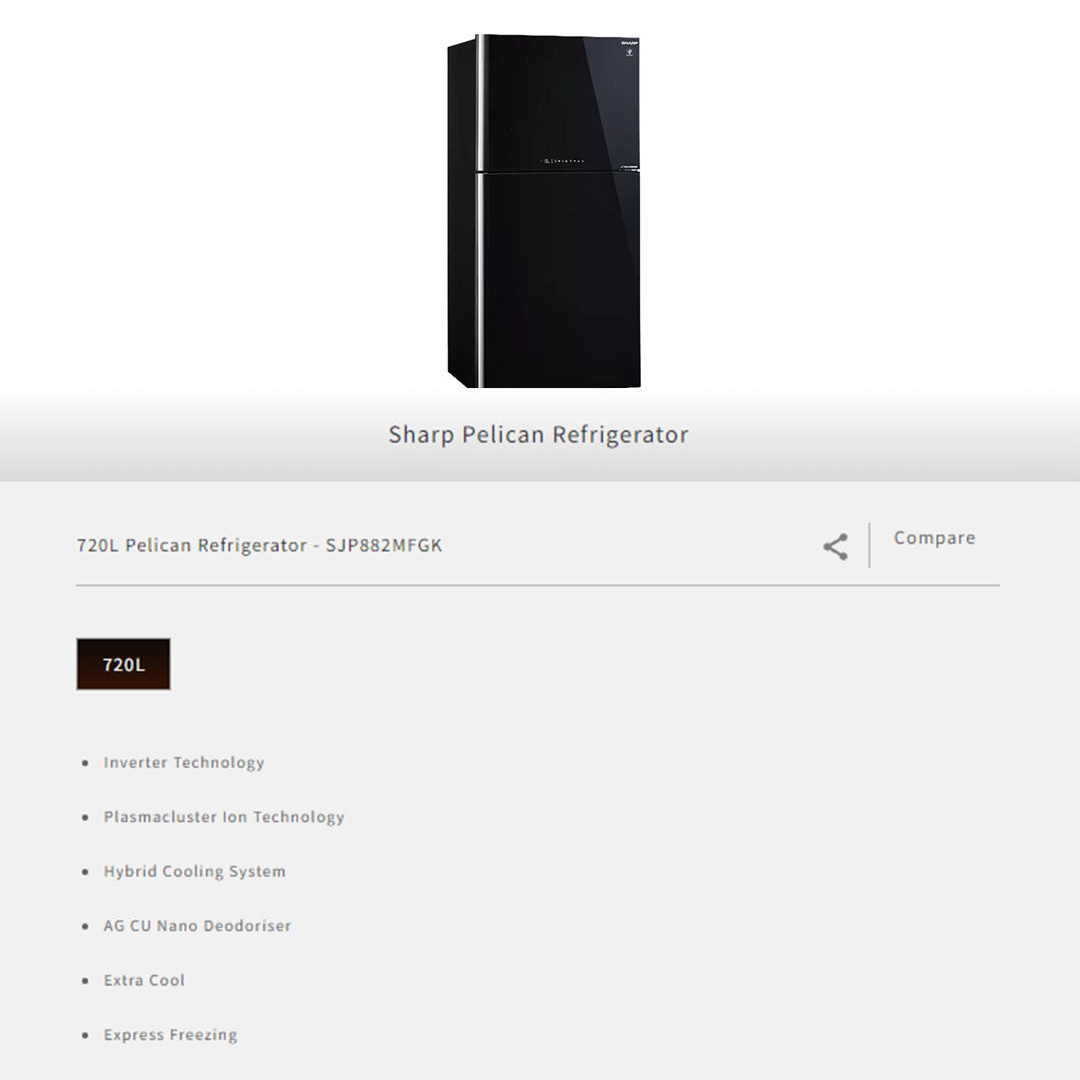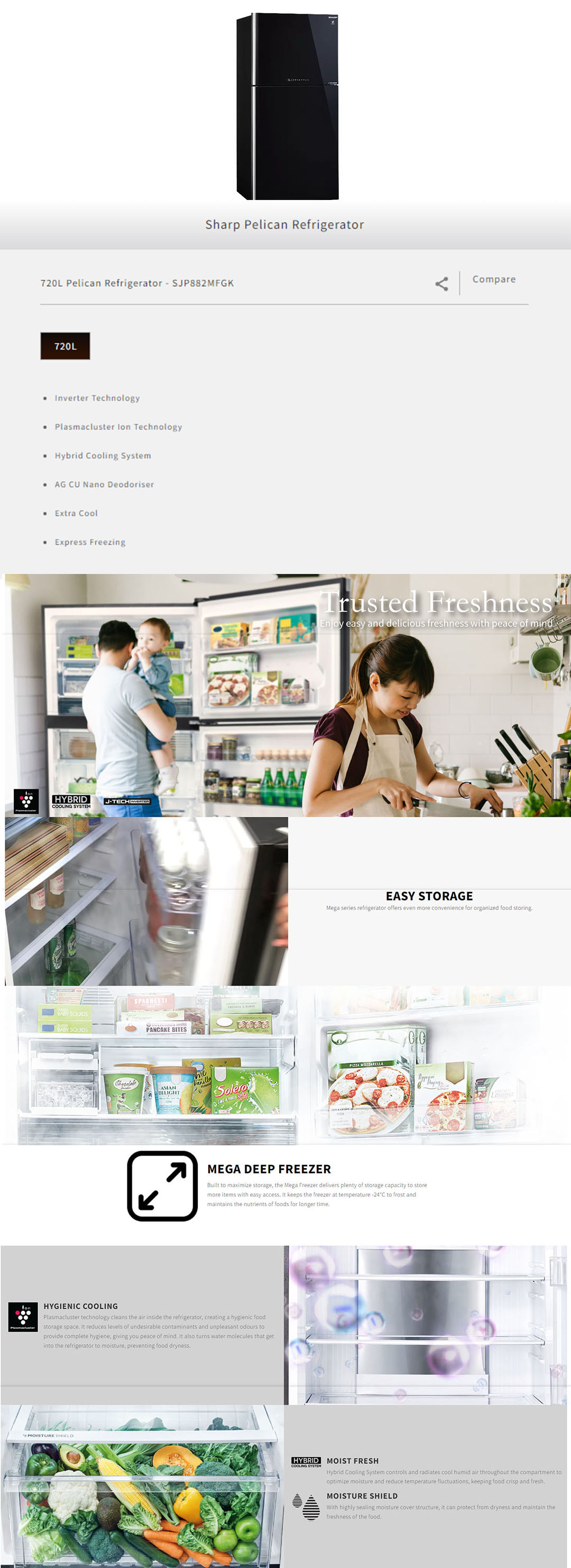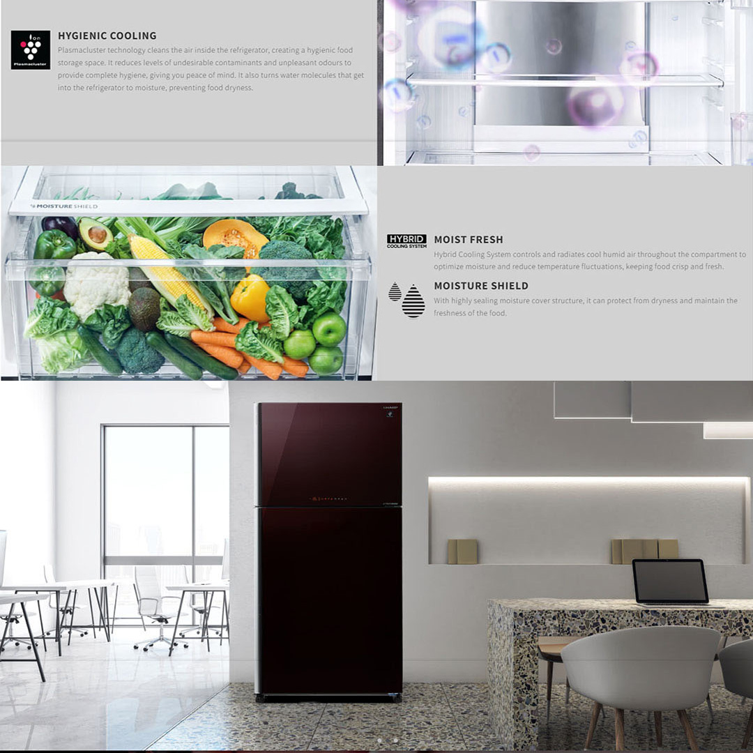 Sharp 720L 2 Doors Top Mount J-Tech Inverter Pelican Refrigerator SJP882MFGK | Plasmacluster Ion Technology | Hybrid Cooling System | AG CU Nano Deodoriser | Express Freezing | Door Alarm | Refrigerator with 1 Year General & 12 Year Motor Warranty
