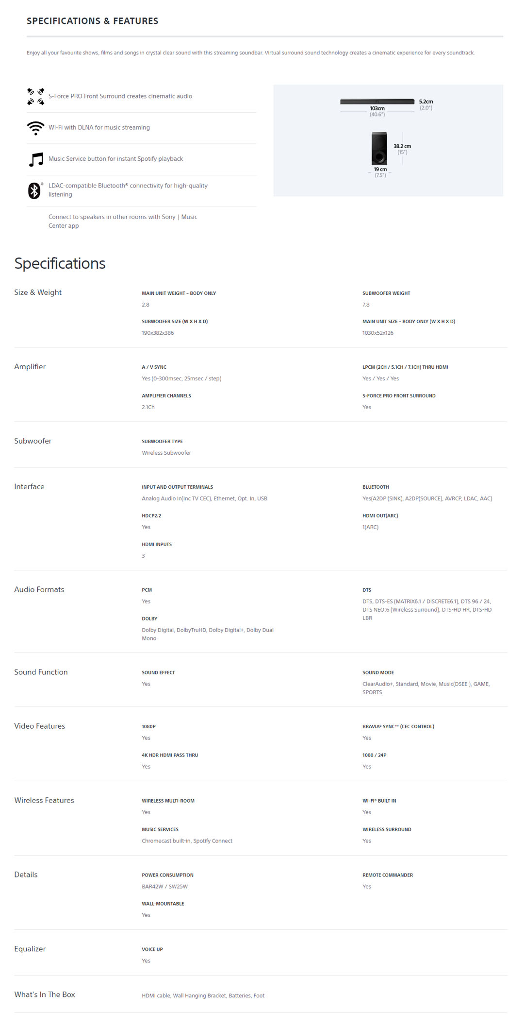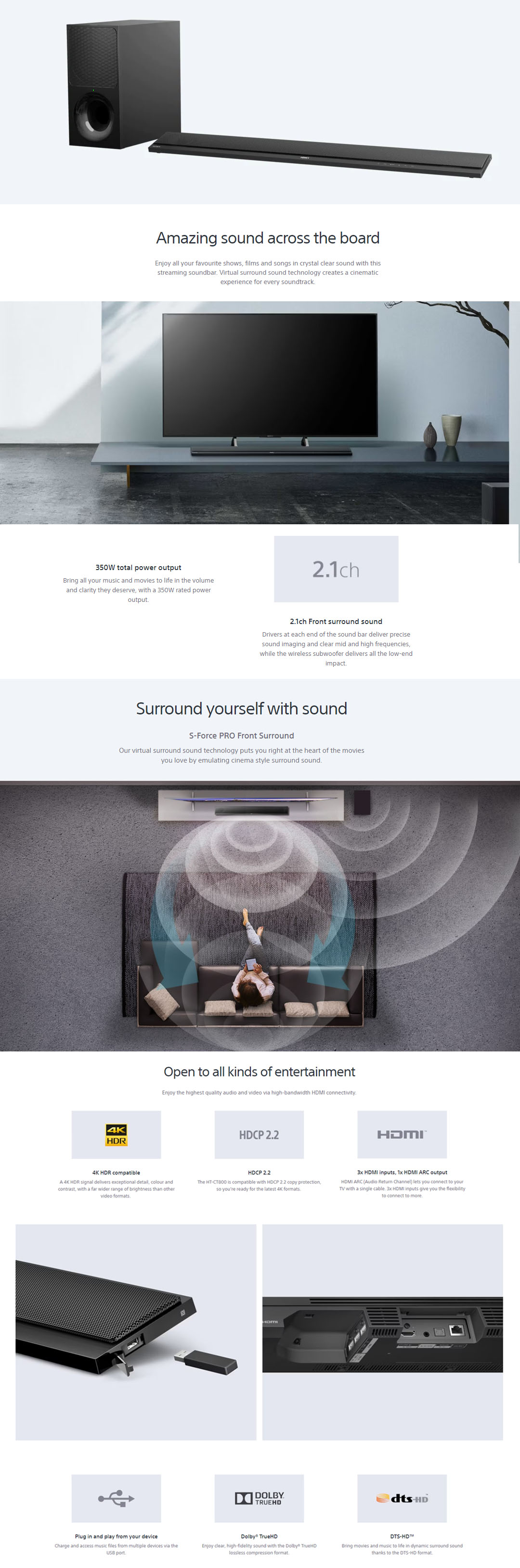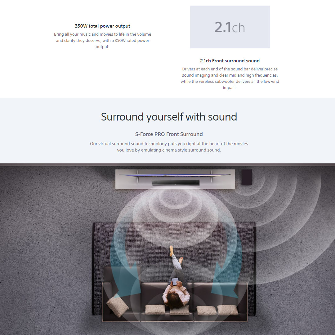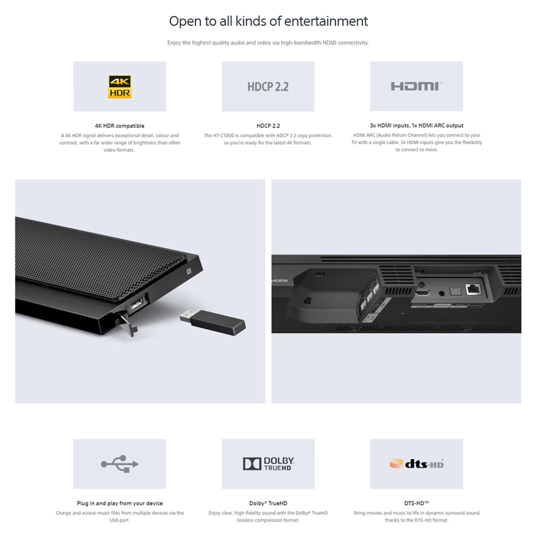 SONY 350W 2.1 CH Soundbar Black HT-CT800 | 1080P | Bluetooth | HDMI | Dolby Digital | Voice Mode | Chromecast Built-In | Spotify | Soundbar with 1 Year Warranty