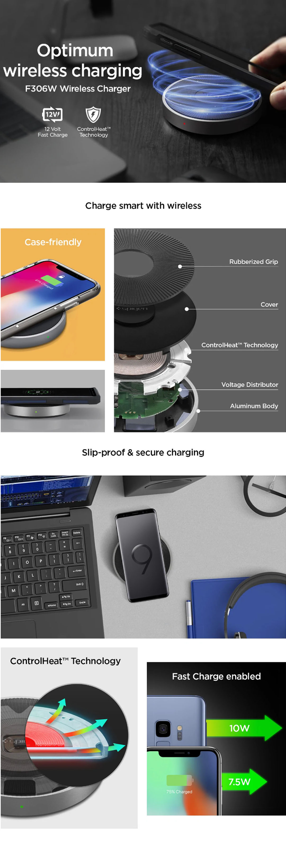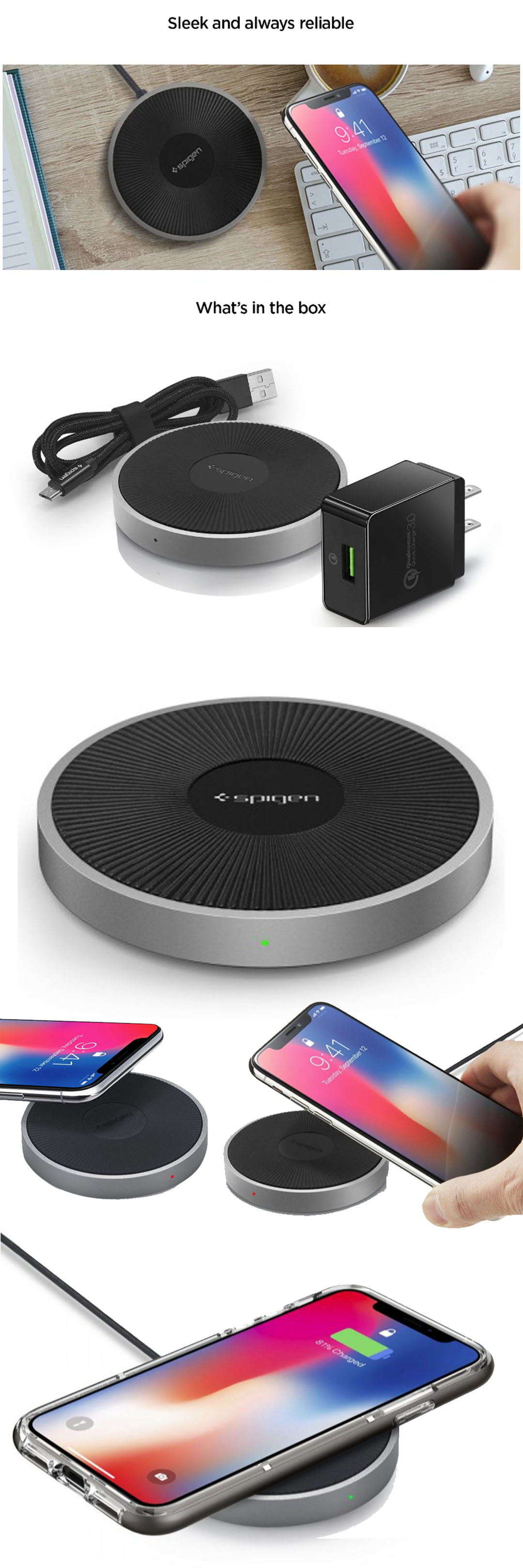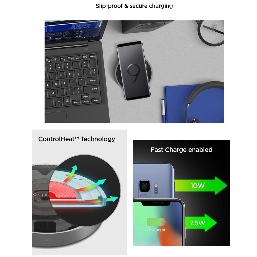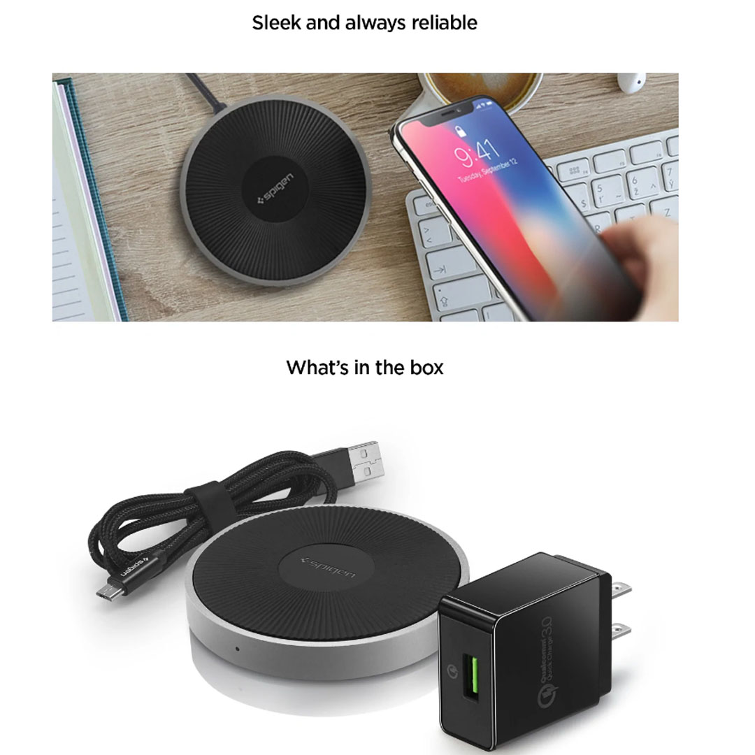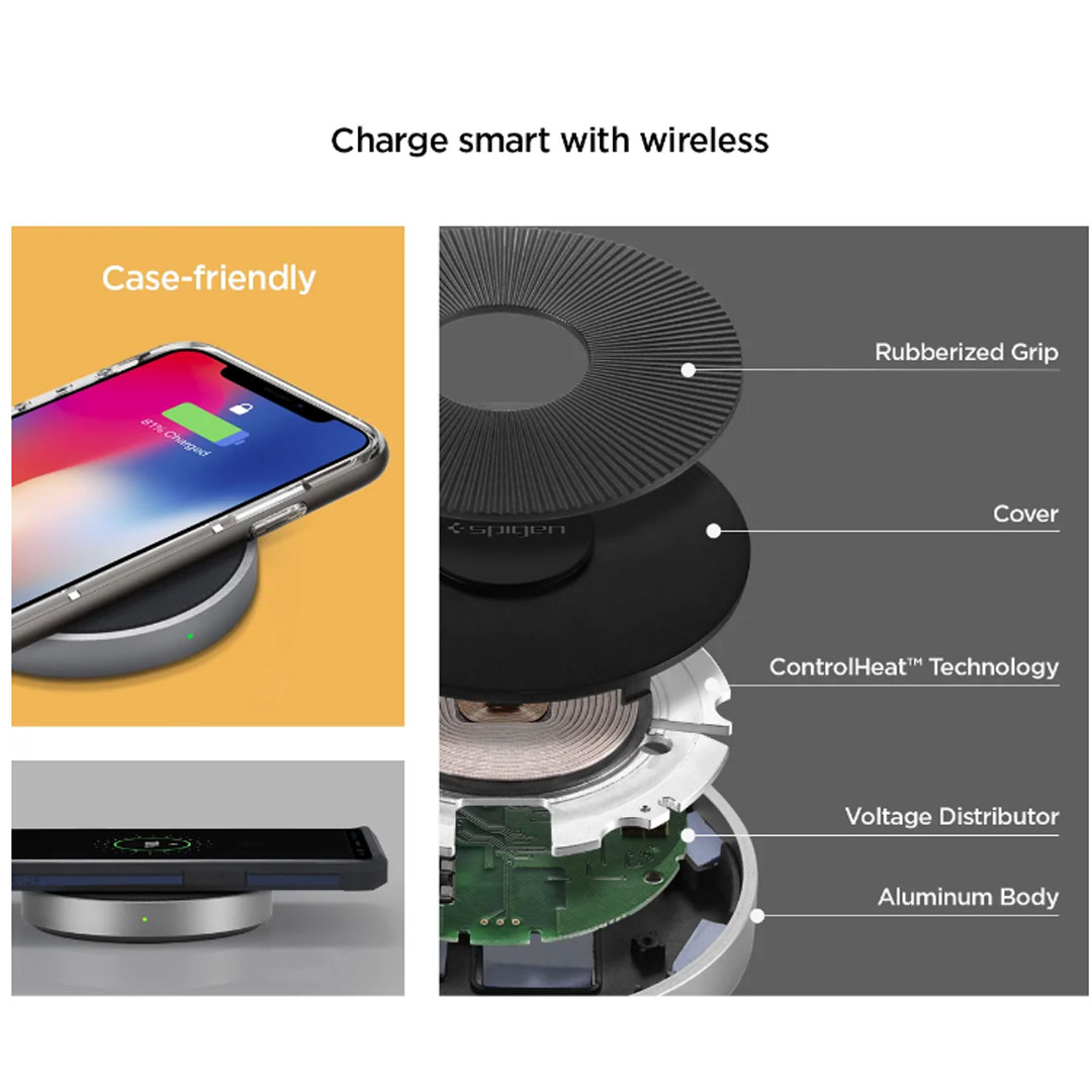 Spigen Essential Wireless Charger (10W) F306W | Control Heat Technology | Case-friendly | Fast Charge Enabled |
