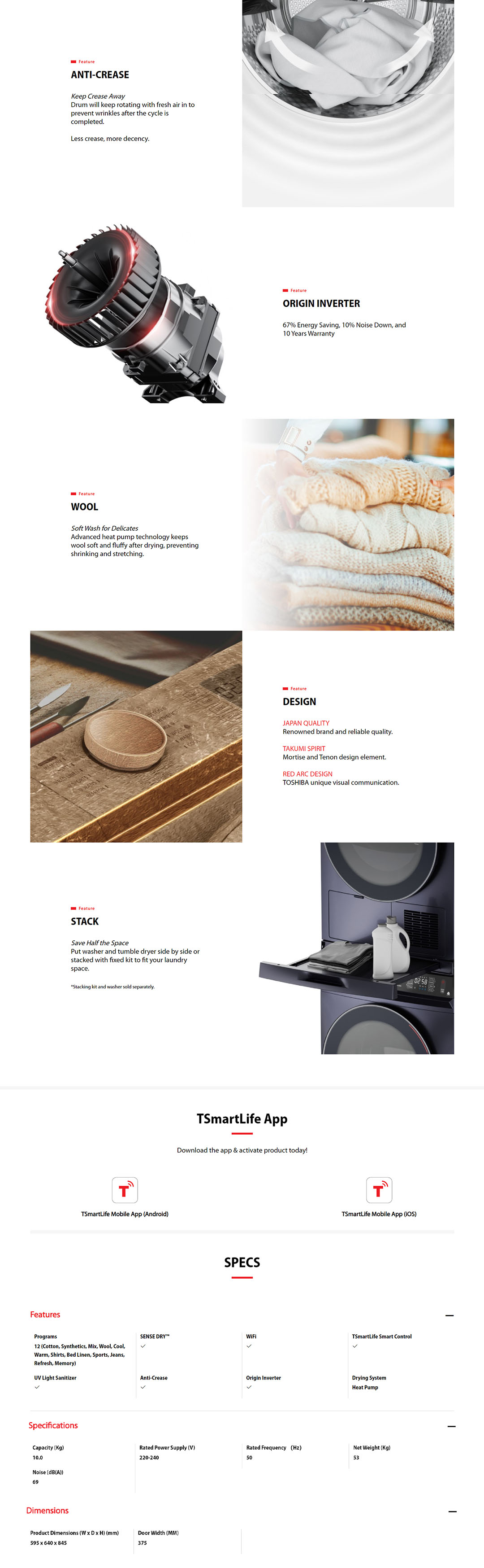 Toshiba 10KG Heat Pump Inverter Tumble Dryer TD-BK110GHM(SK) | Heat Pump | Smart Plan | Drying Cycle Auto Set | SENSEDRY | Hygiene | UV Sanitize | Anti-Crease | Wool | Stack | Tumble Dryer with 2 Year General Warranty