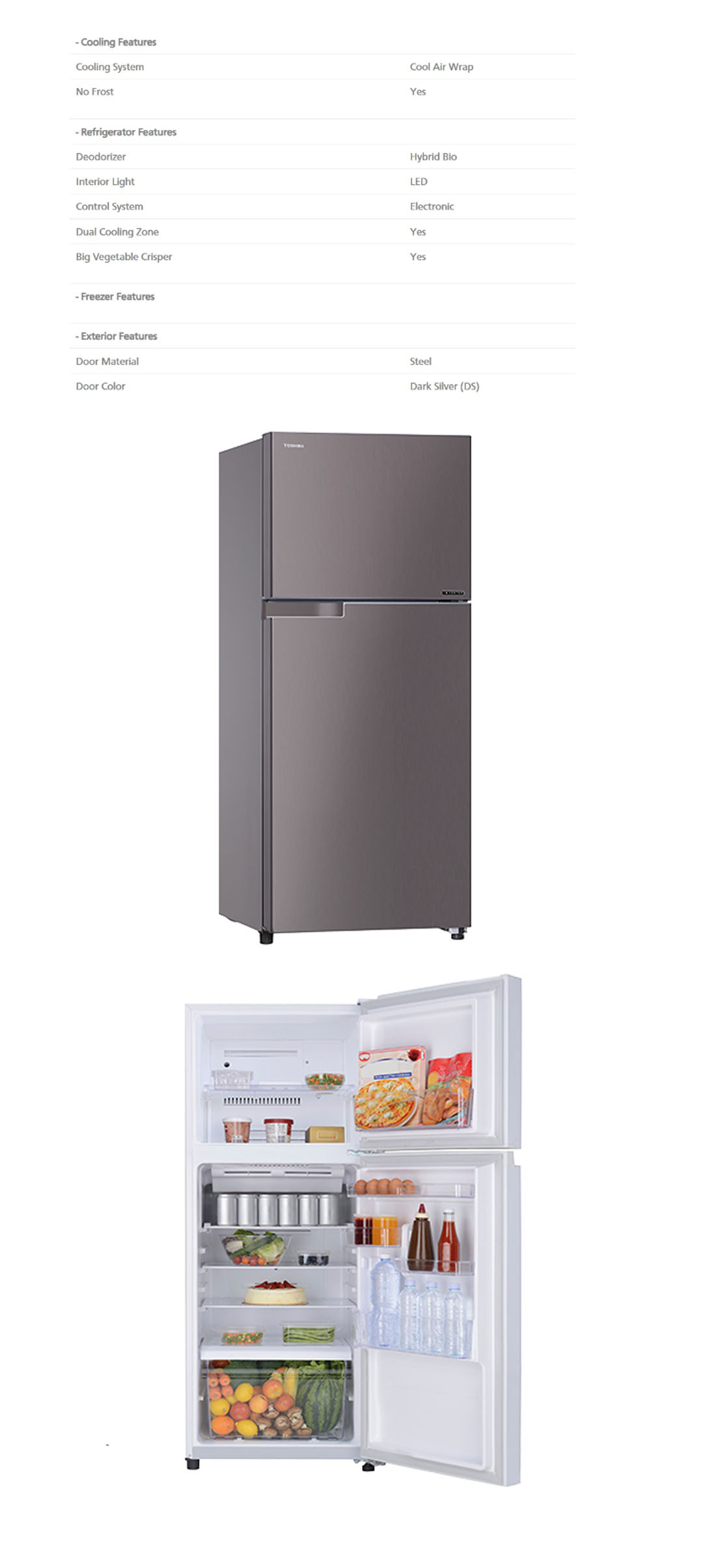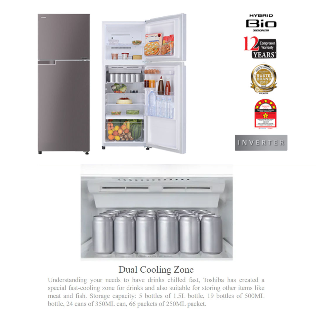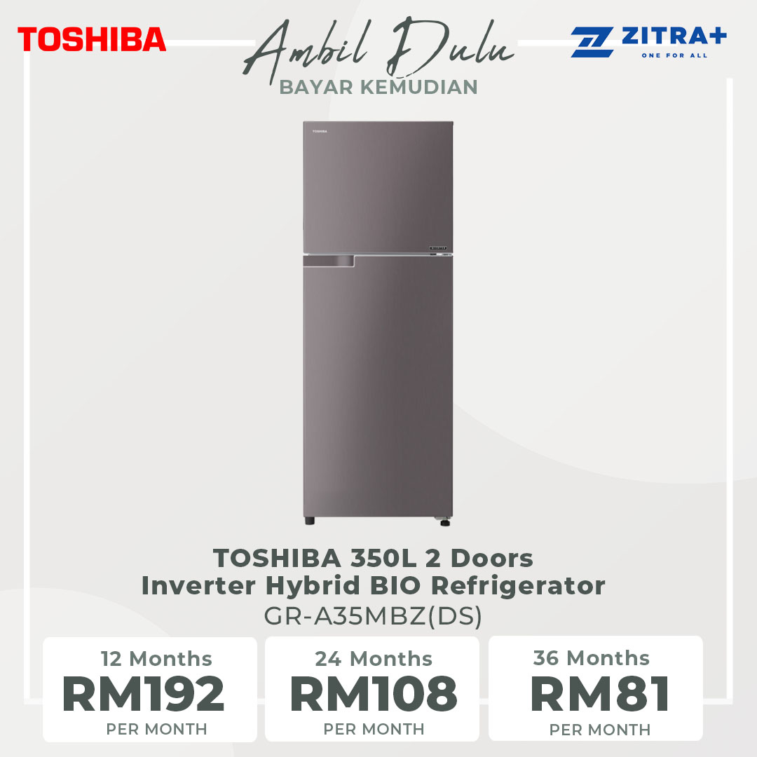 TOSHIBA 350L 2 Doors Inverter Hybrid BIO Refrigerator GR-A35MBZ(DS) | Dual Cooling | Zone Hybrid Bio Deodorizer | Refrigerator with 1 Year General & 12 Year Compressor Warranty