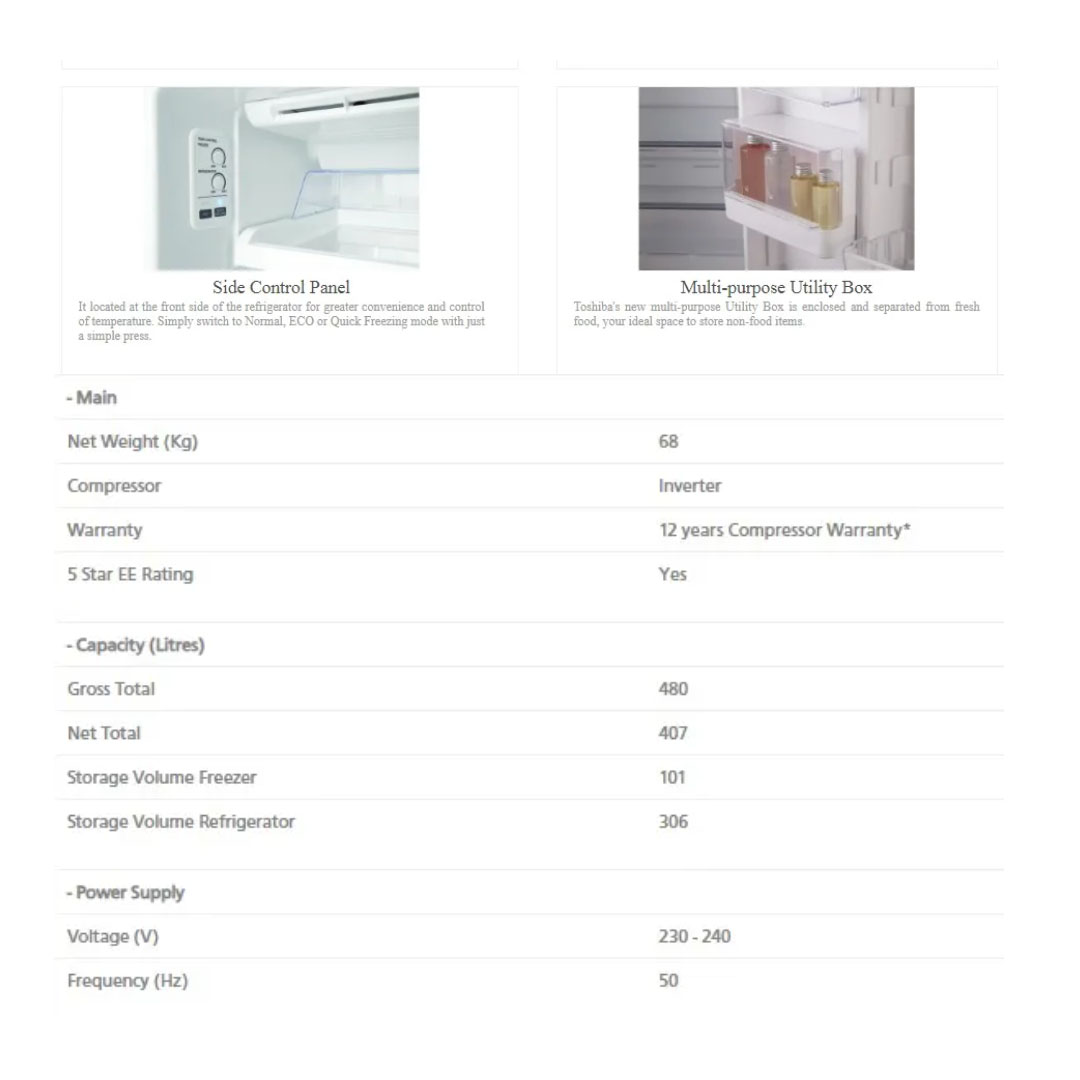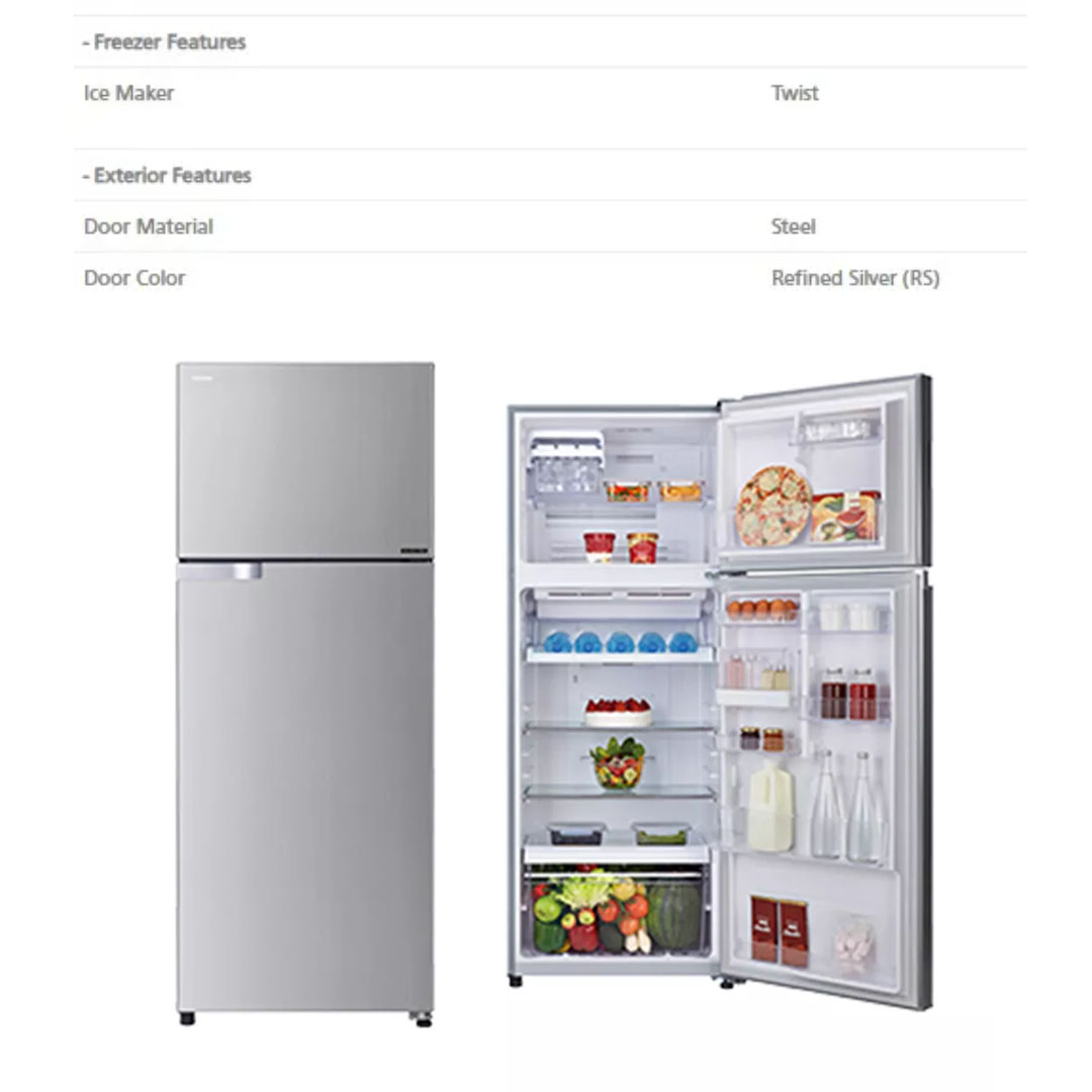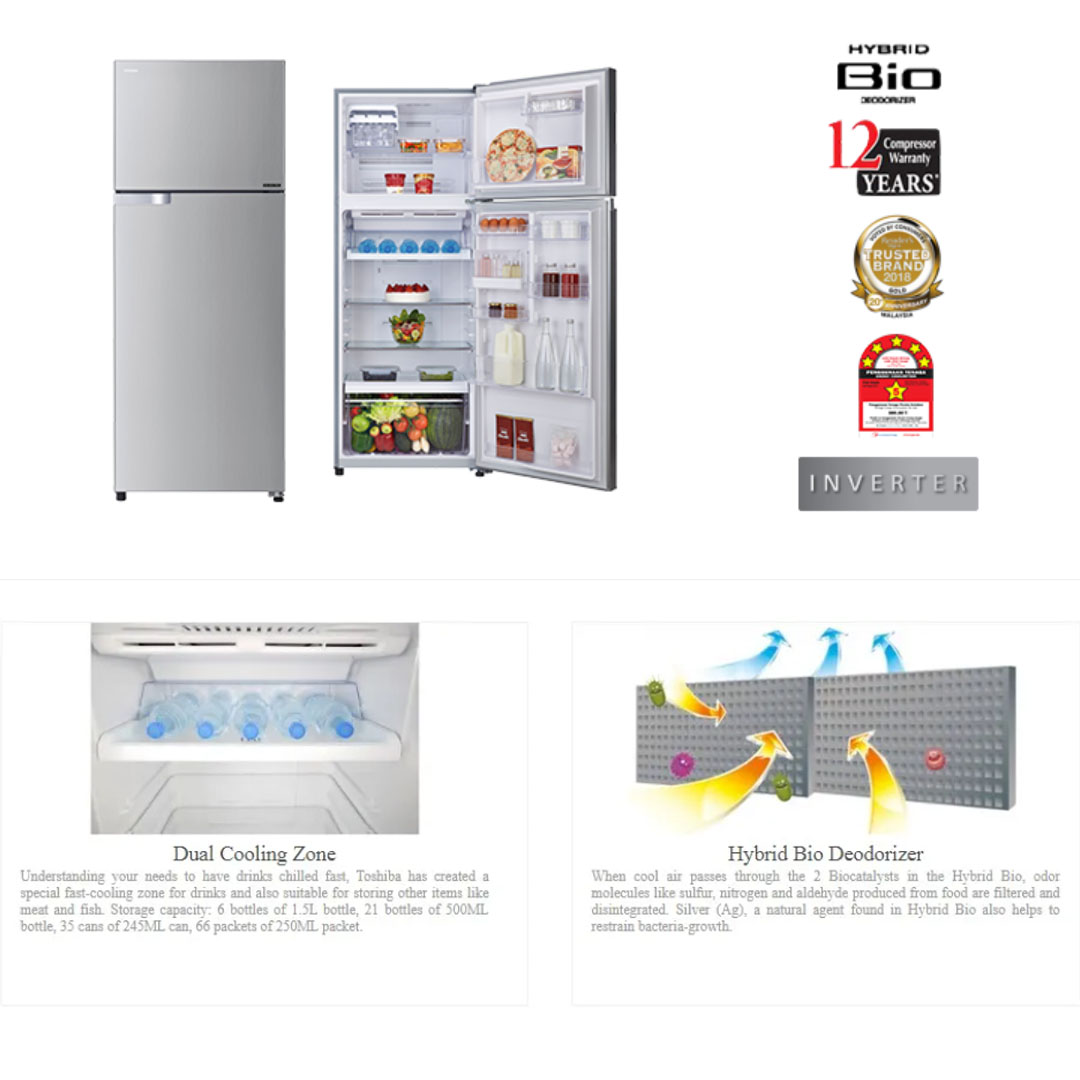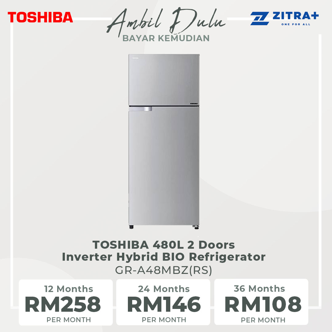TOSHIBA 480L 2 Doors Inverter Hybrid BIO Refrigerator GR-A48MBZ(RS) | Dual Cooling Zone | Hybrid Bio Deodorizer | Refrigerator with 1 Year General & 12 Year Compressor Warranty
