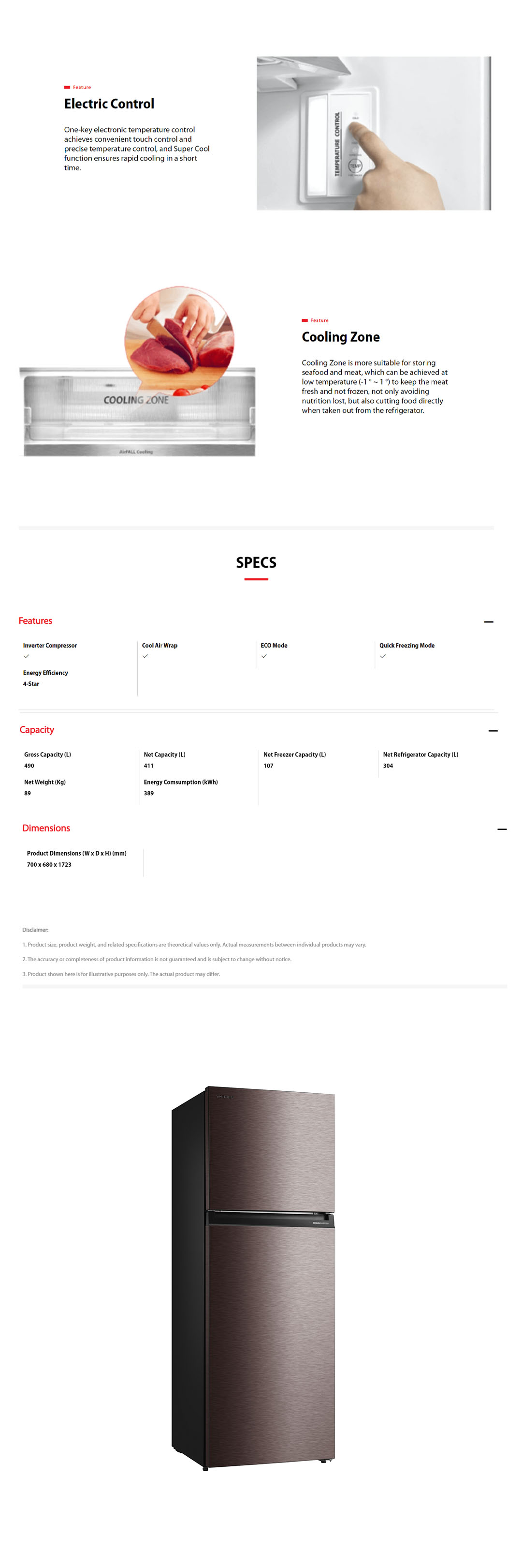 TOSHIBA 490L 2 Doors Inverter Refrigerator GR-RT559WE-PMY(37) | Airfall Cooling | Origin Inverter | Humidity Control | Refrigerator with 1 Year General and 12 Year Compressor Warranty