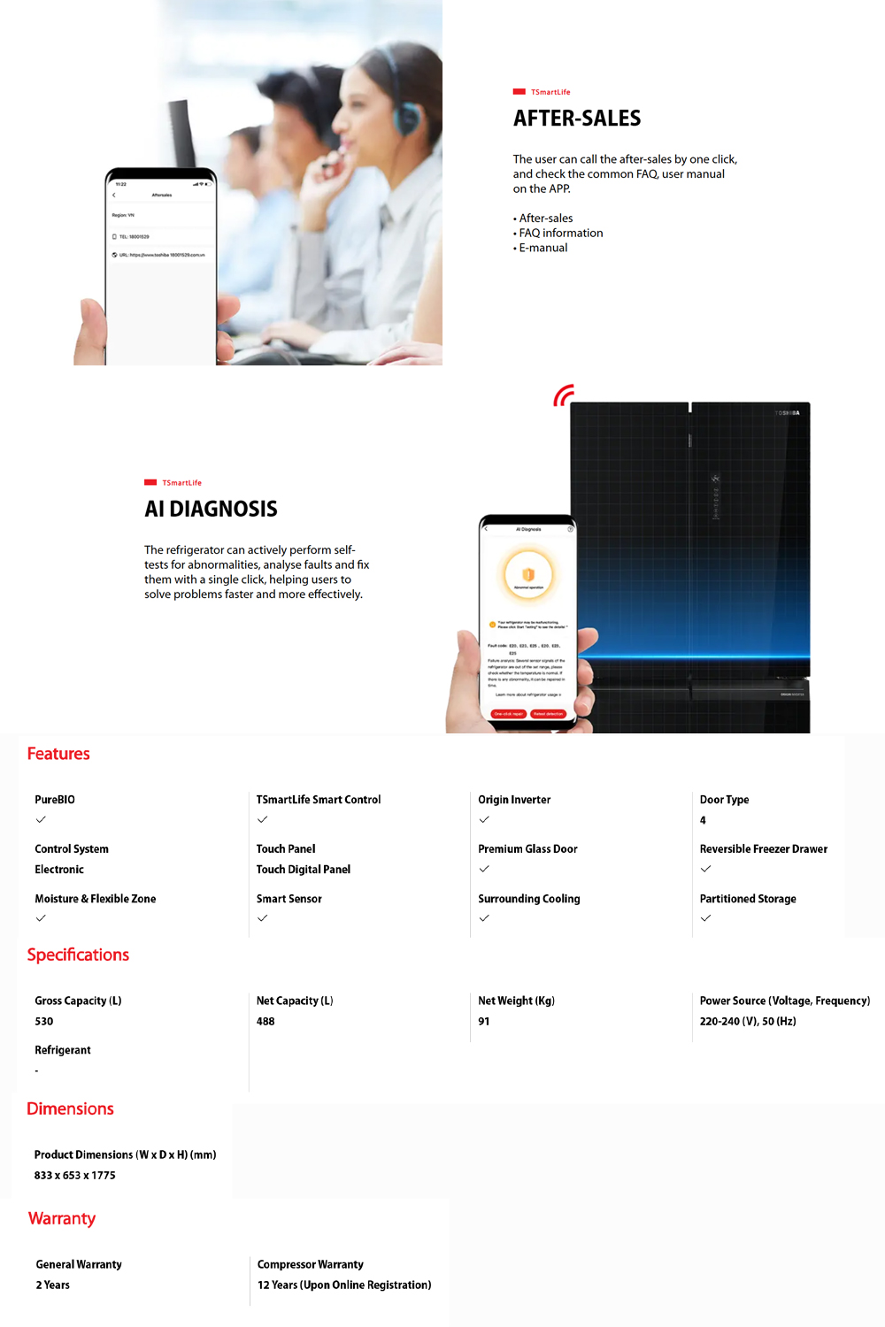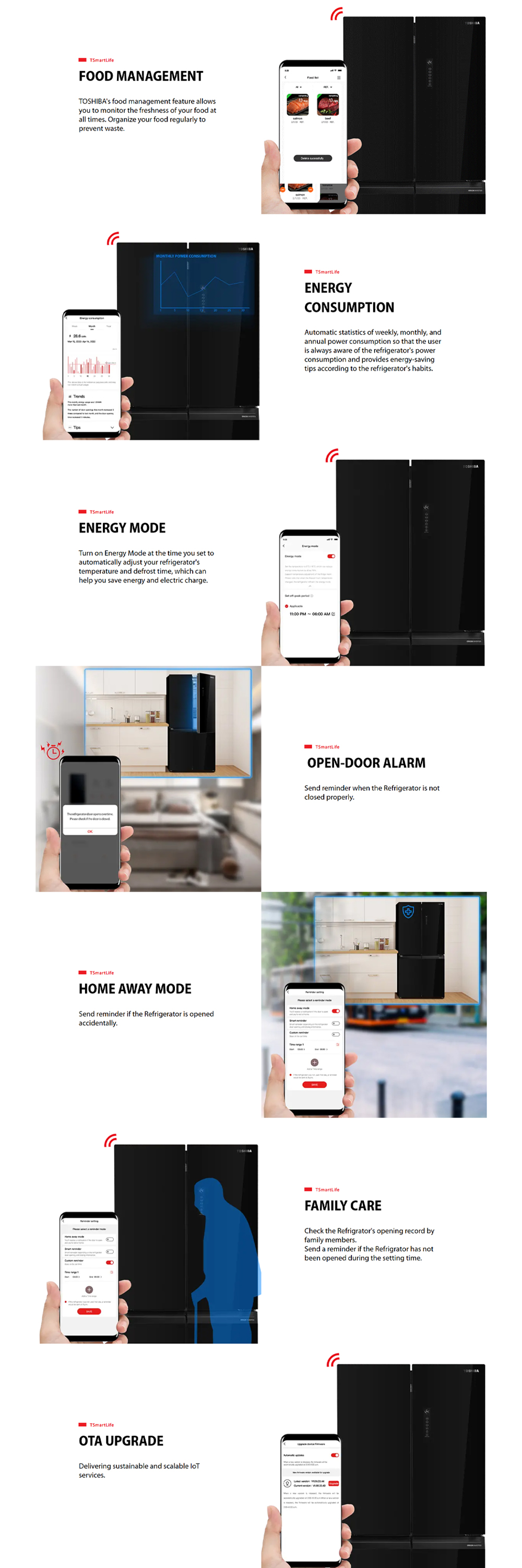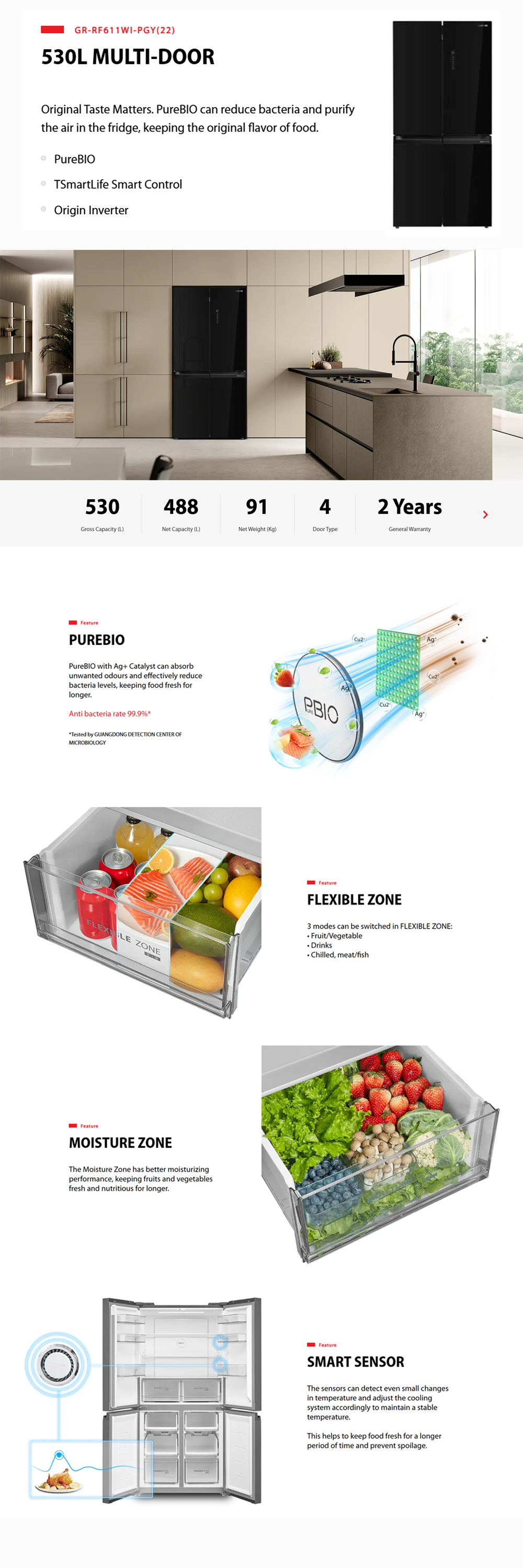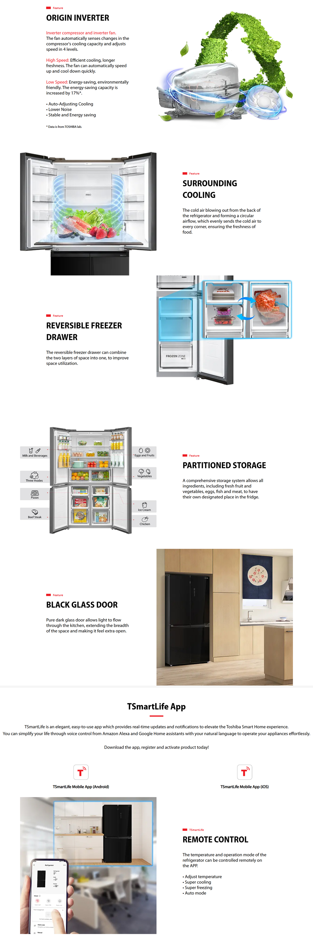 TOSHIBA 530L Multi Doors Origin Inverter IoT Refrigerator Black Glass GR-RF611WI-PGY(22) | PureBIO | TSmartLife Smart Control | Origin Inverter