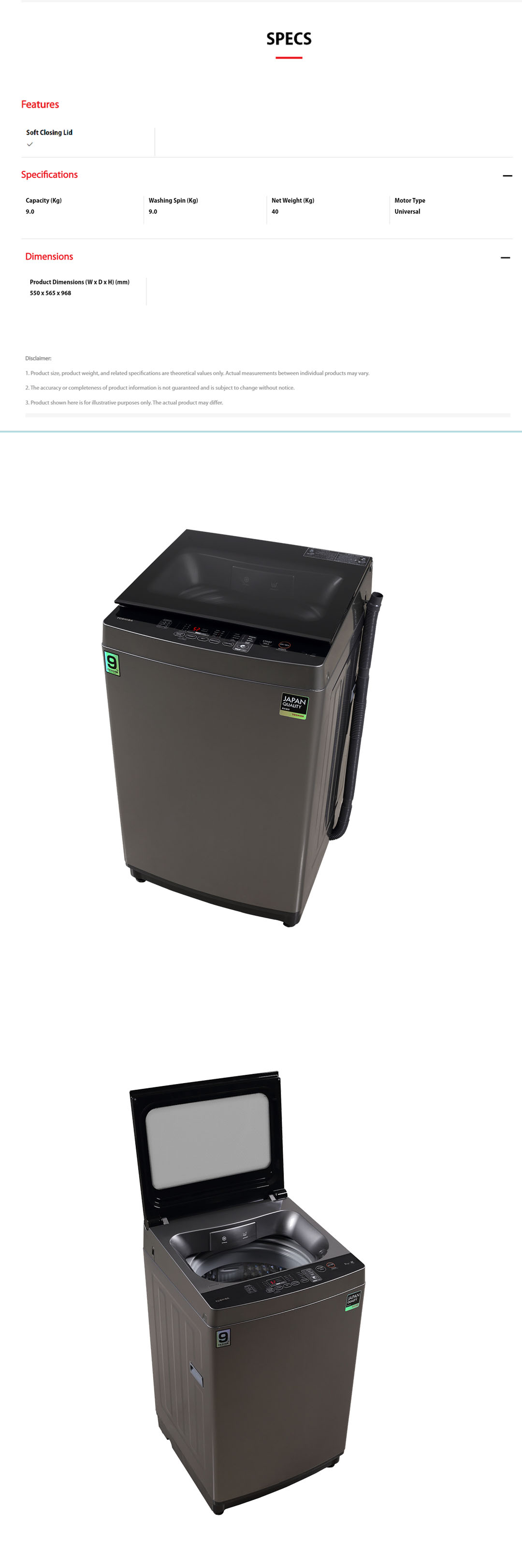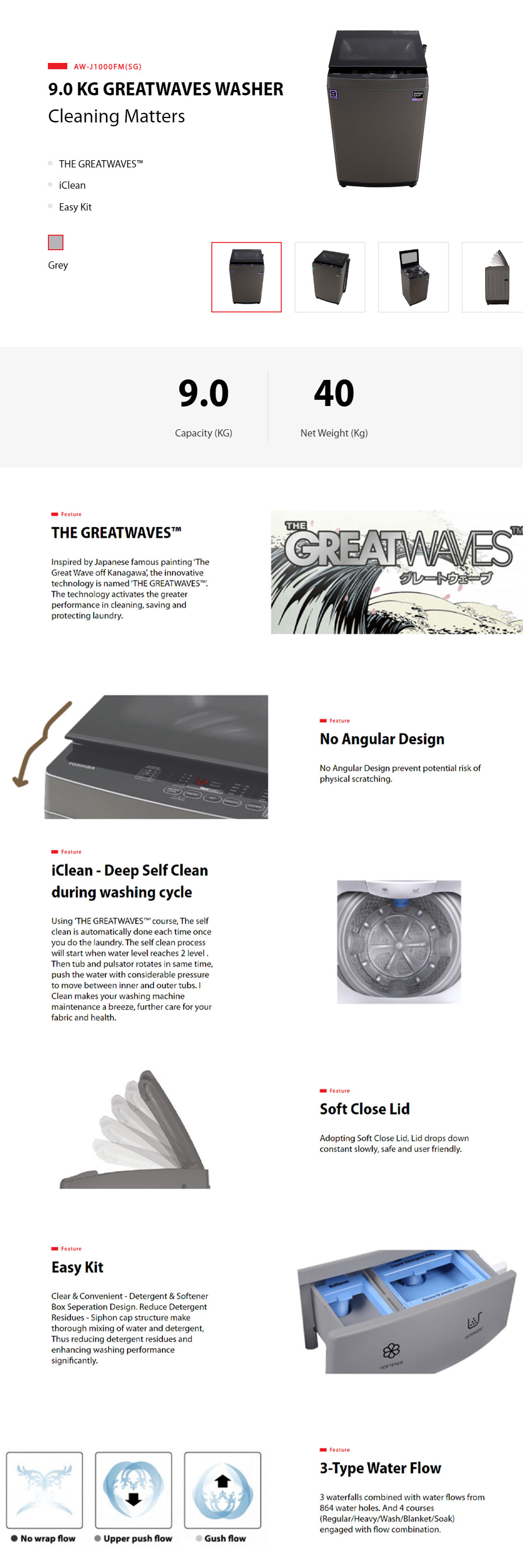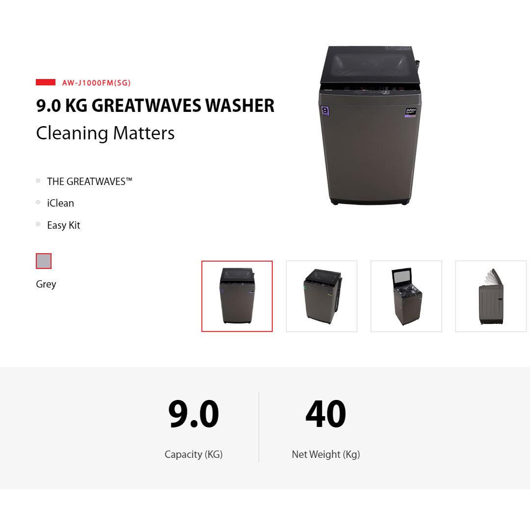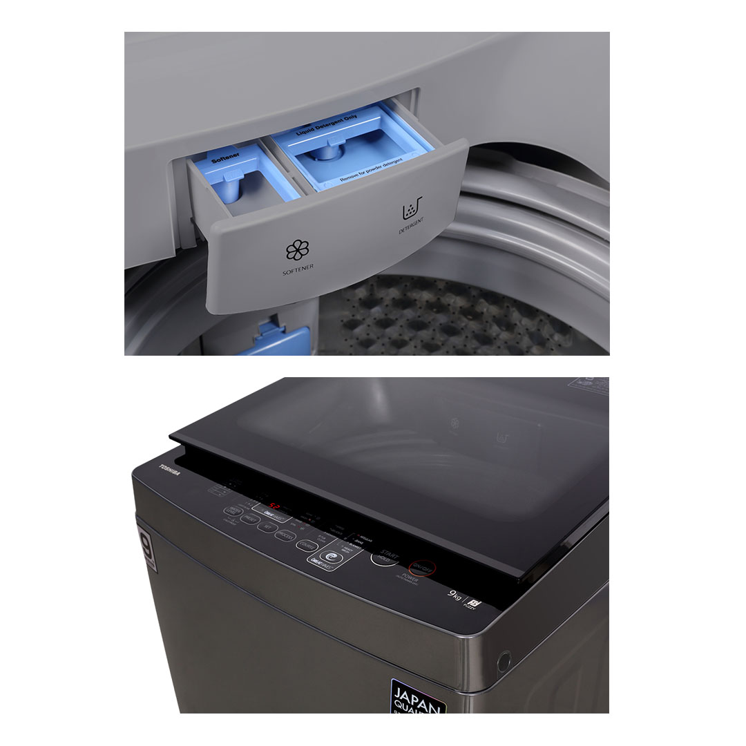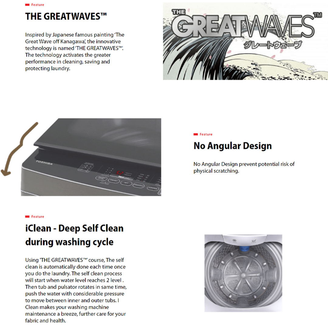 Toshiba 9KG Top Load THE GREATWAVES Washing Machine AW-J1000FM(SG) | Easy Kit | iClean | THE GREATWAVES | No Angular Design | Soft Clean Lid | 3-Type Water Flow | Top Load Washer with 2 Year General & 3 Year Panel & 7 Year Motor Warranty