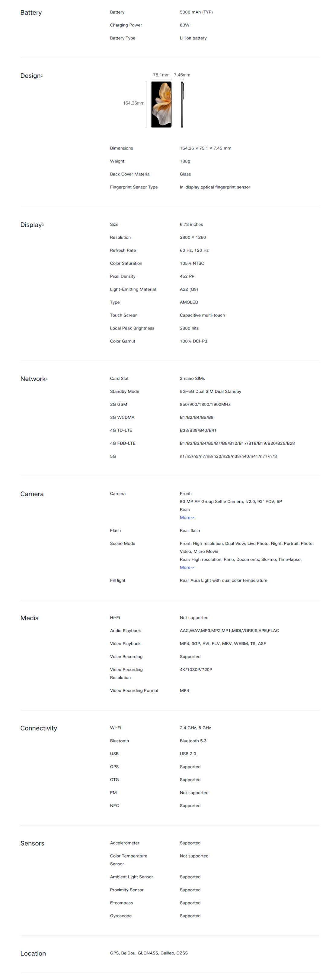 • Screen Size(inch): 6.78 inches, AMOLED, 1B colors, HDR10+, 120Hz, Schott α glass
