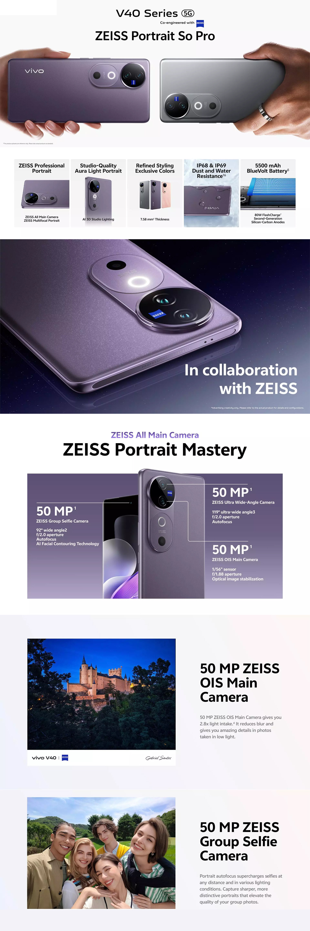 Vivo V40 5G 12GB+256GB | 50MP ZEISS All Main Camera | Qualcomm Snapdragon Processor | 80W FlashCharge