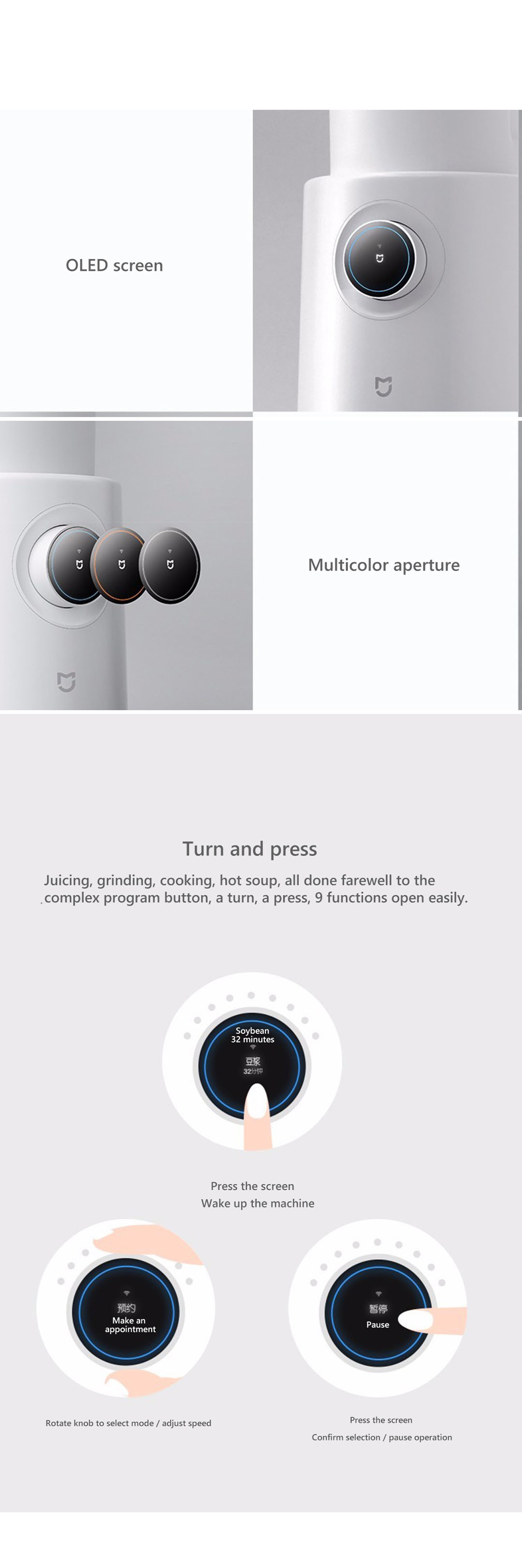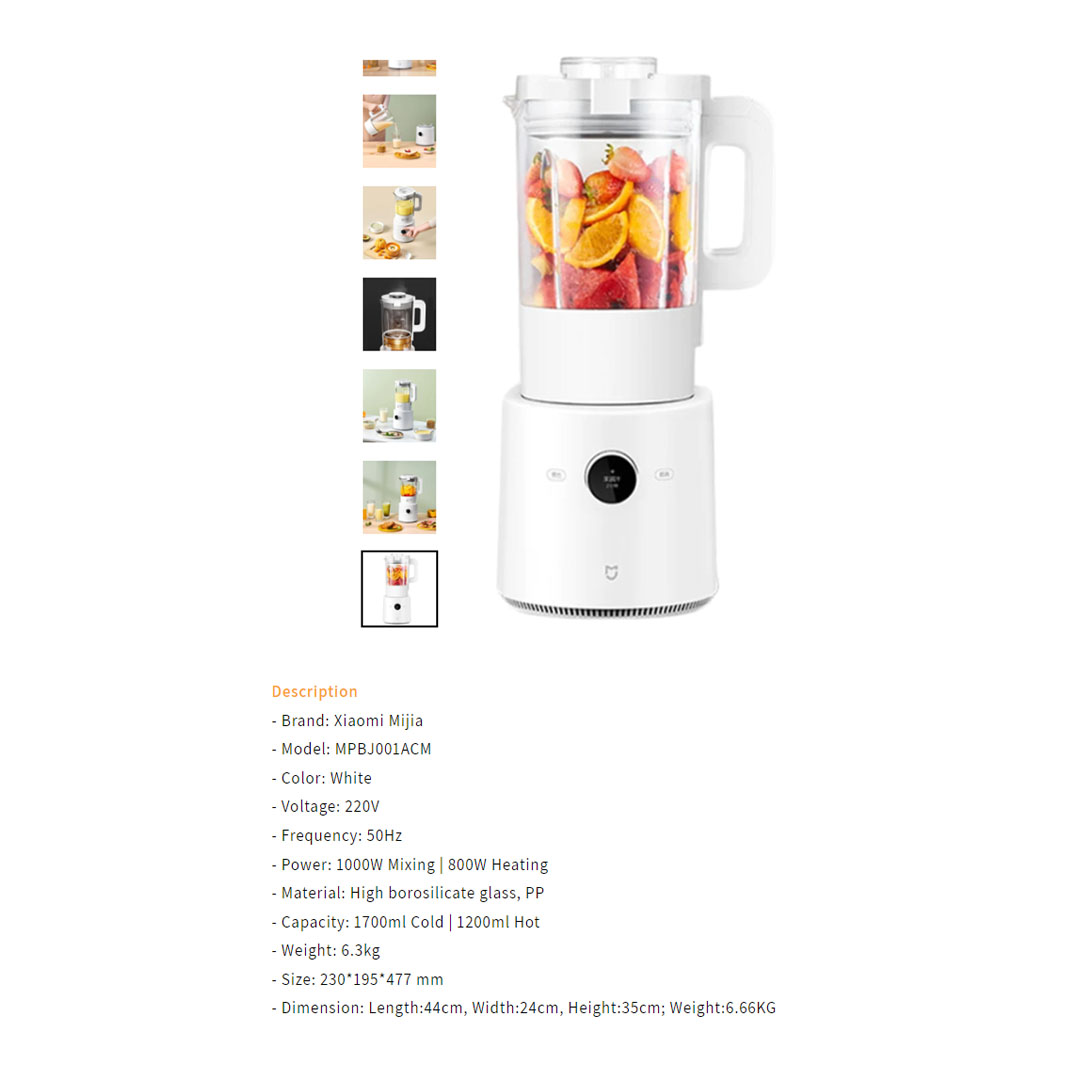 Xiaomi 1.2L Mijia Smart Blender MPBJ001ACM | OLED Knob Control | Intelligent Linkage | SmartApp Control | 8 Modes & 9-Speed Frequency | Overheat Protection | Smart Blender with 1 Year Warranty