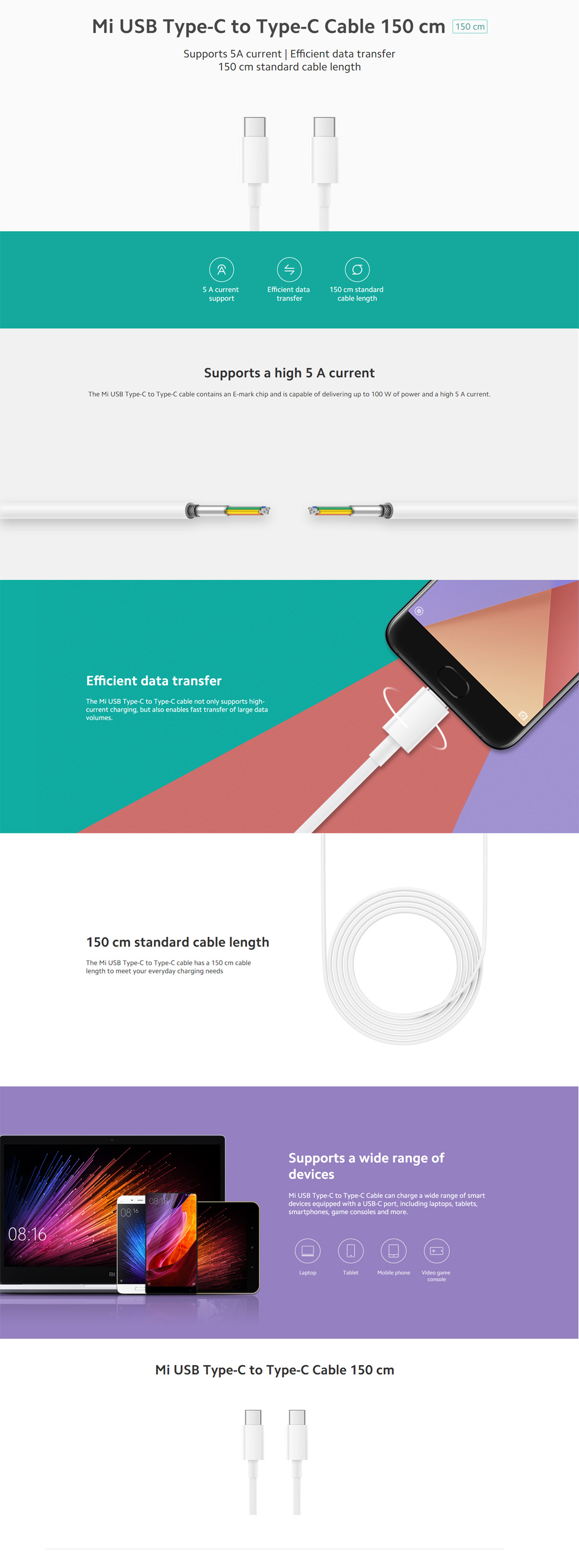 ● 150cm Standard Cable Length ● 5 A Current Support ● TPE Material
