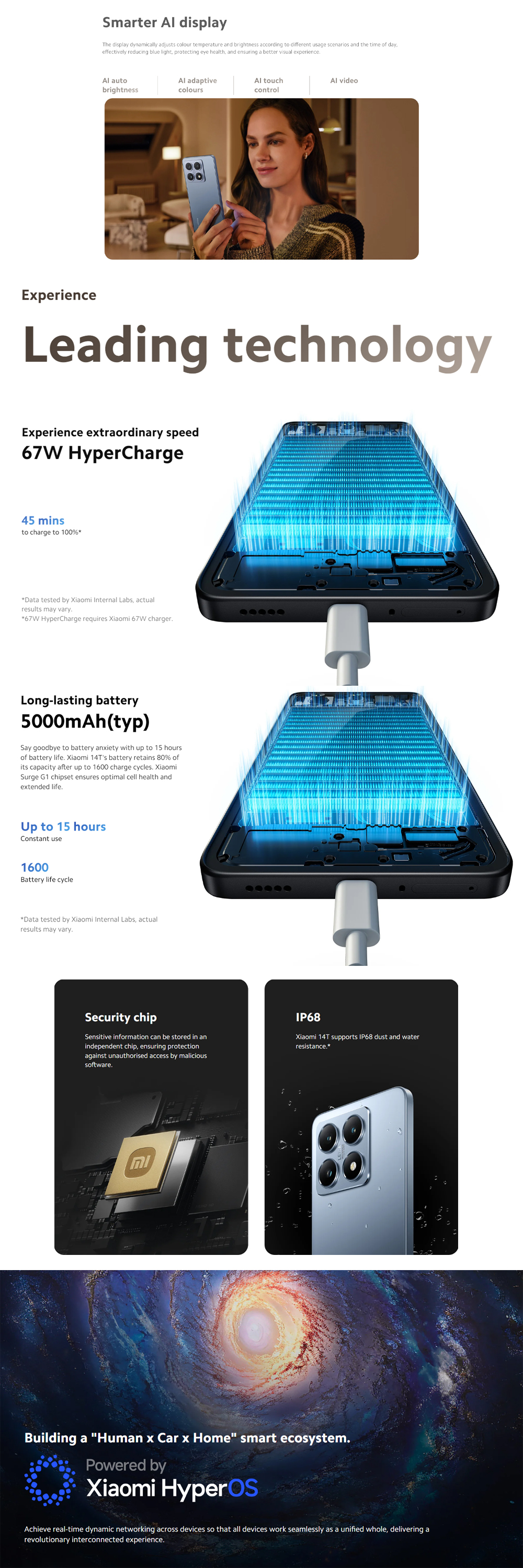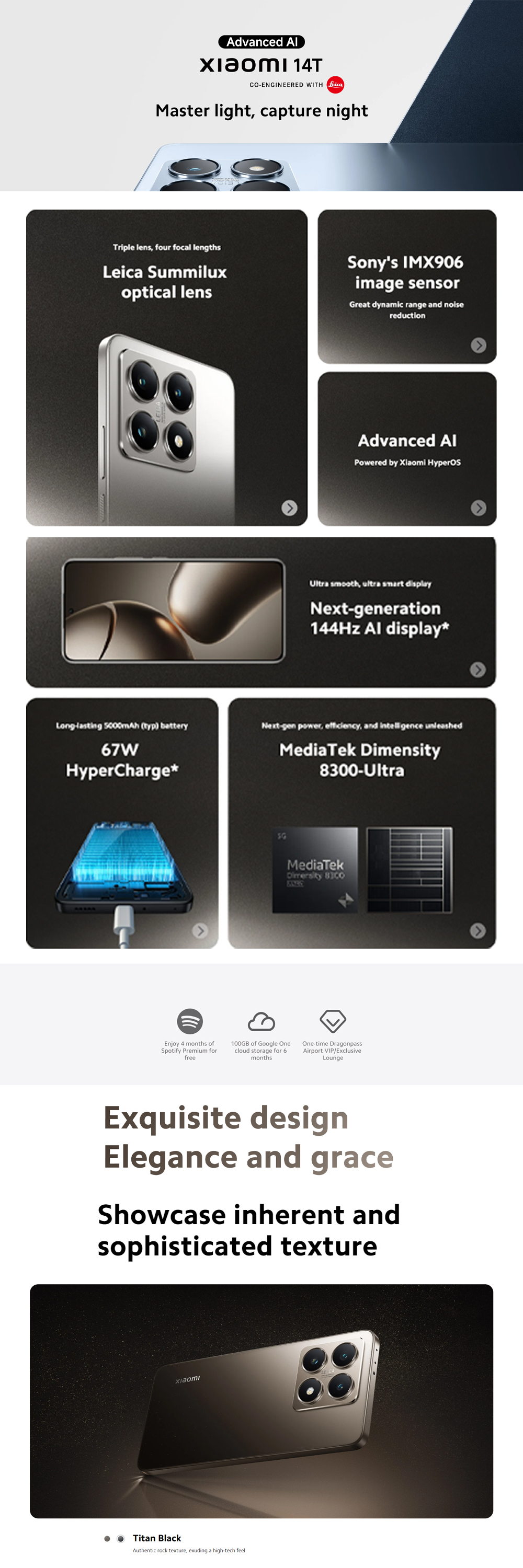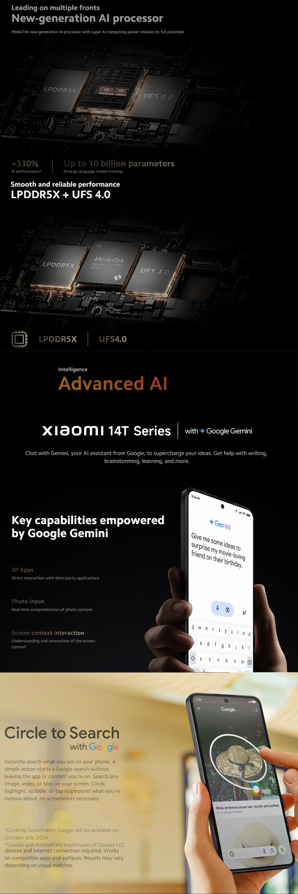 Xiaomi 14T 12GB + 256GB/512GB | 6.67", AMOLED | Mediatek Dimensity 8300 Ultra (4 nm) | 67W turbo charging