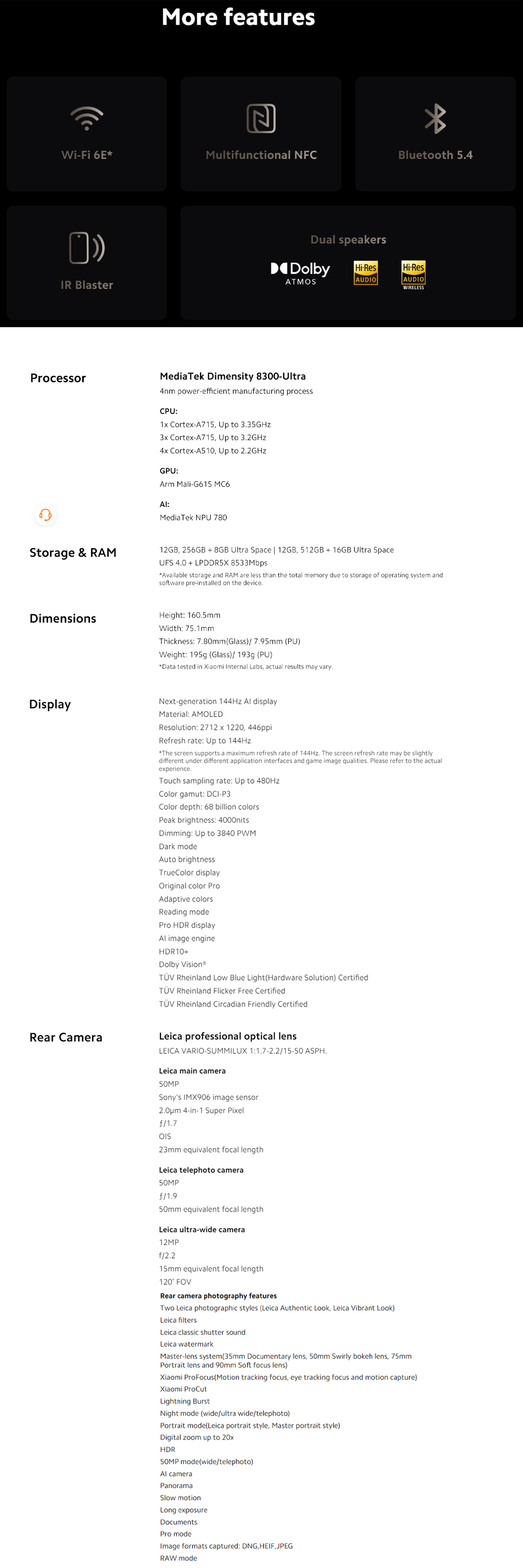 ▪ Processor Type : Mediatek Dimensity 8300 Ultra (4 nm)