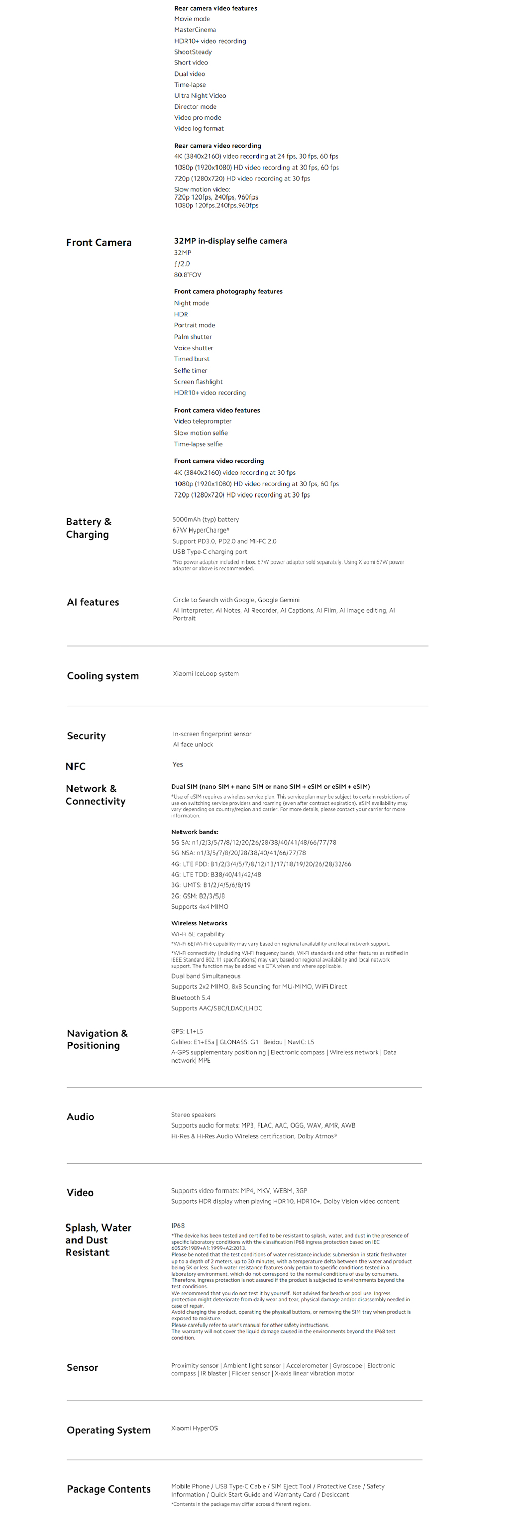▪ Battery Capacity(mAh):Li-Po 5000 mAh, 67W turbo cha