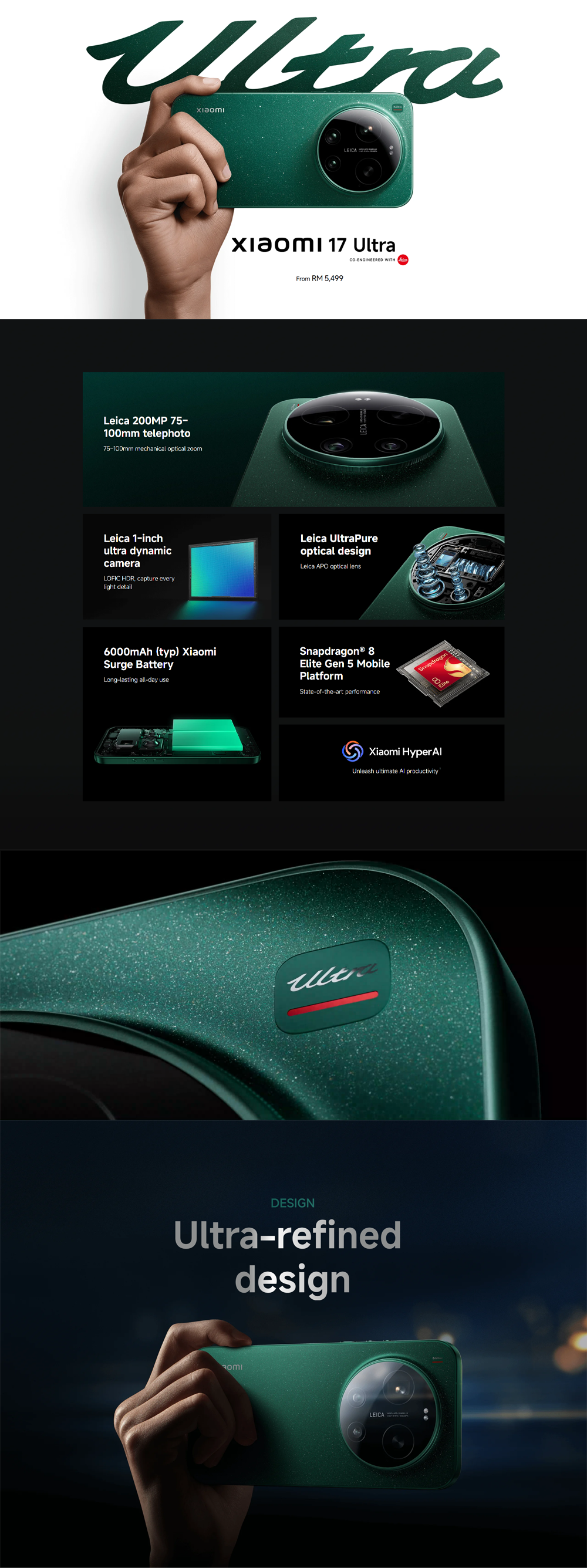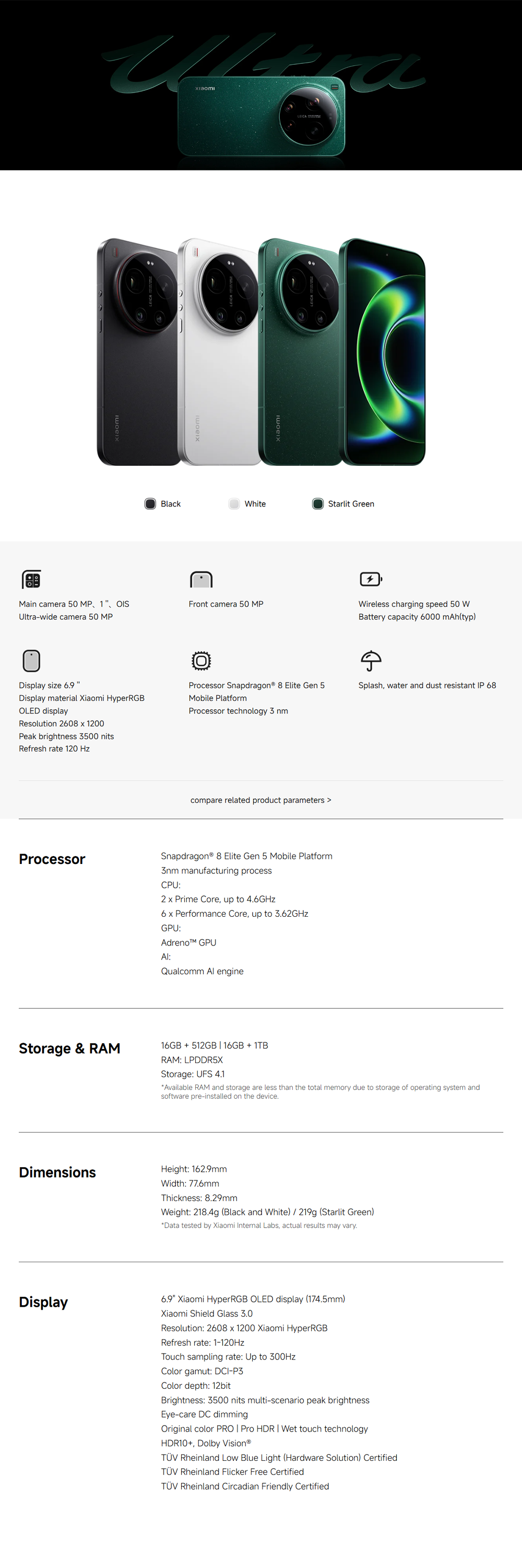 Xiaomi 17 Ultra 16GB+512GB/16GB+1TB | 6.9", LTPO AMOLED | 50MP Rear Camera | Qualcomm SM8850-AC Snapdragon 8 Elite Gen 5 (3 nm) | Li-Po 6000mAh, Supports 90W fast charging