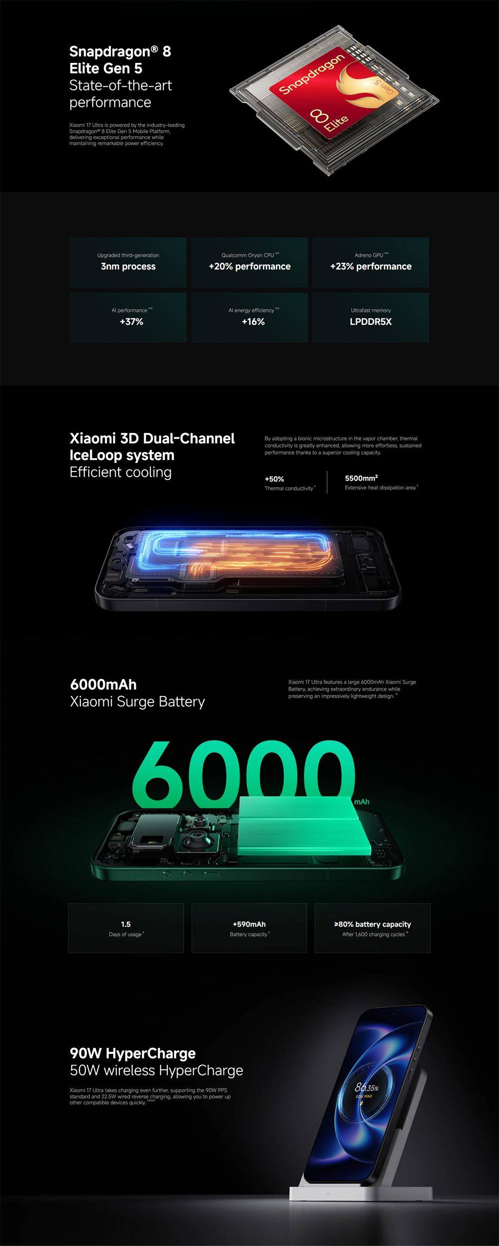 ▪ Battery Capacity(mAh): Li-Po 6000mAh, Supports 90W fast charging