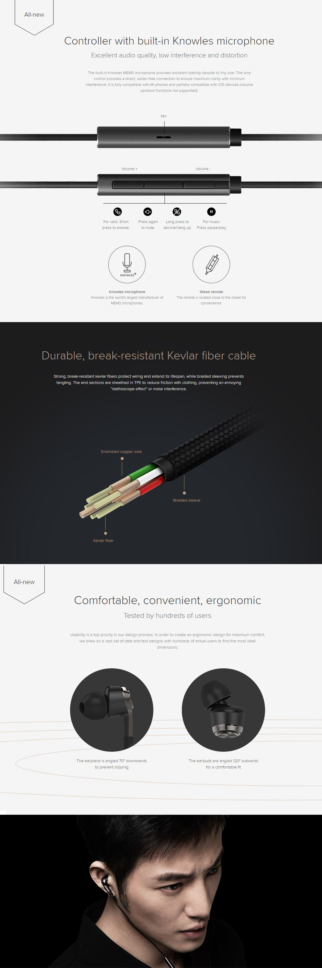 Xiaomi Mi In-ear Headphones Basic | Longlasting Copper | Dual Damping System | No Breaks and Tangles with Kevlar Fibers | Earphones with 6 Month Warranty