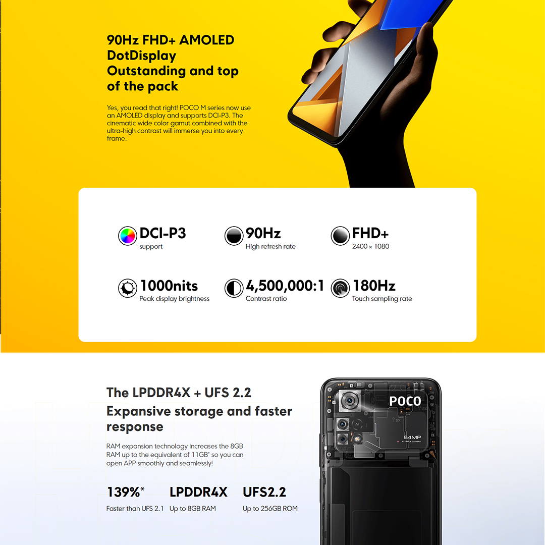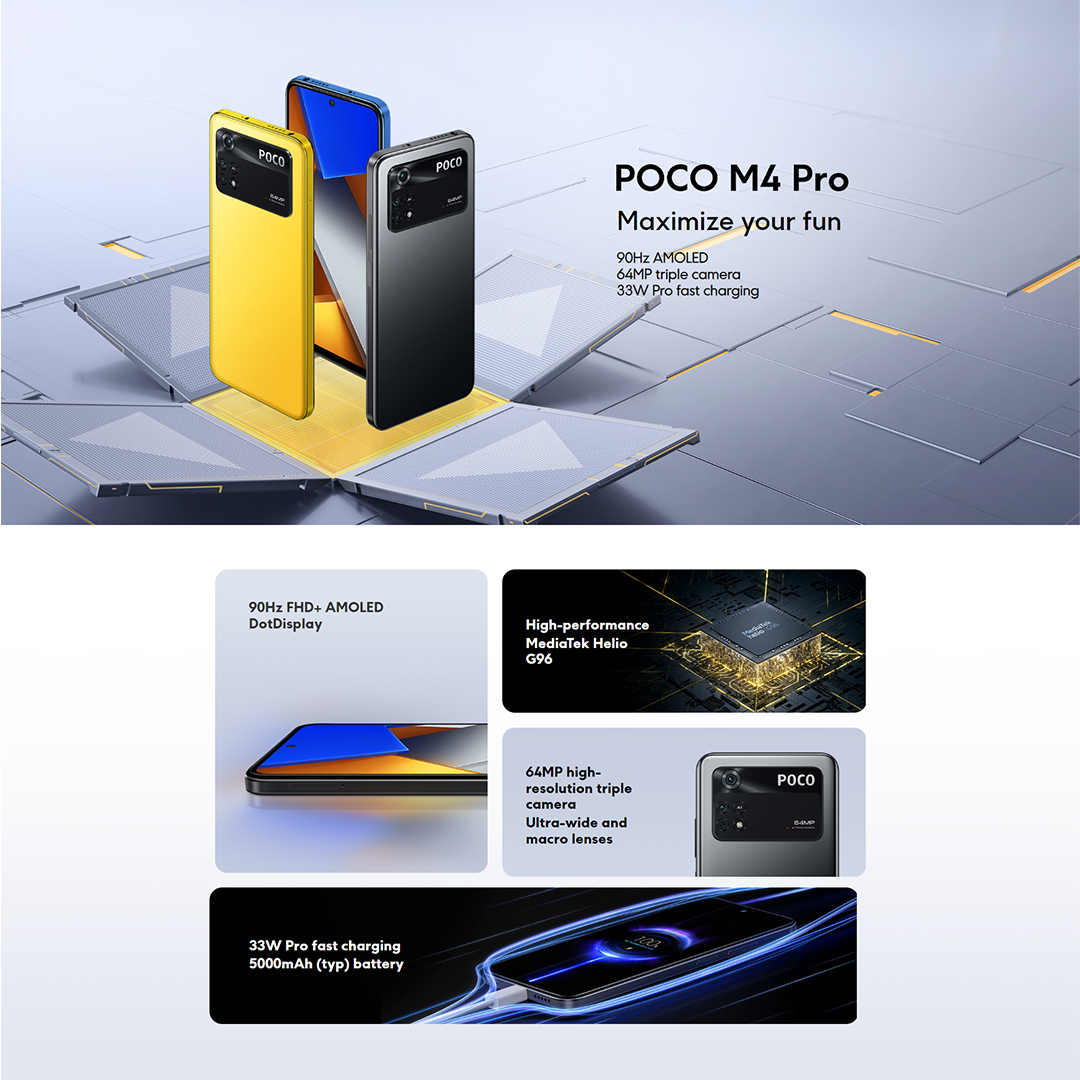 Xiaomi Poco M4 Pro | 8GB+256GB | 90Hz FHD+ AMOLED DotDisplay | 64MP Triple Camera | 33W Pro Fast Charging | MediaTek Helio G96 | 5000mAh Battery | Smartphone with 1 Year Warranty