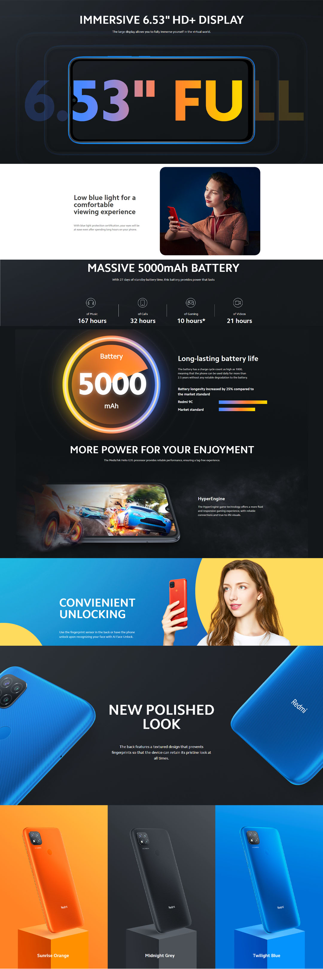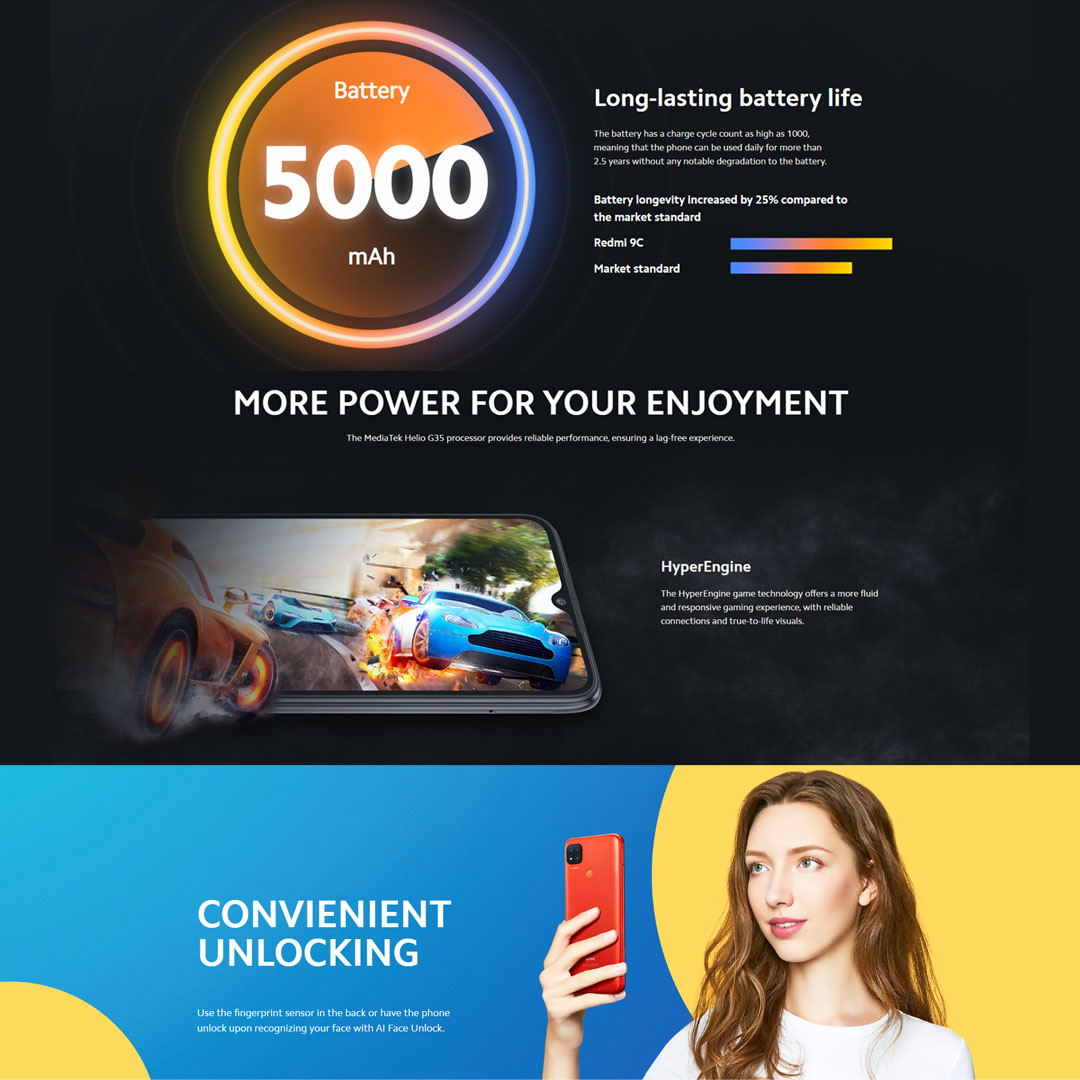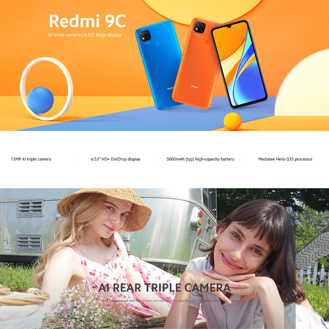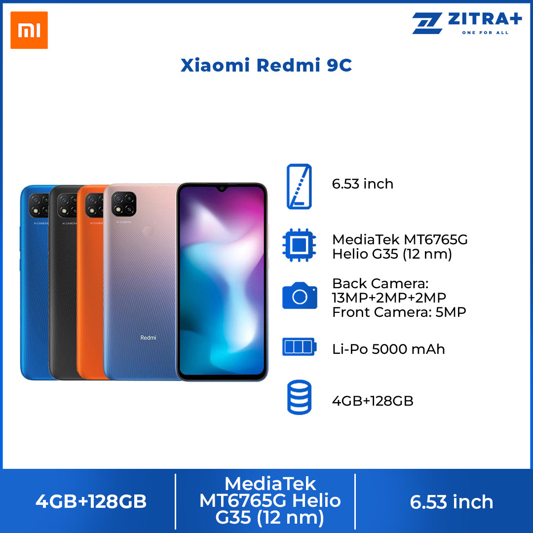 Xiaomi Redmi 9C | 4GB+128GB | MediaTek Helio G35 | 5000mAh Battery | Android 10, MIUI 12 | Smartphone with 1 Year Warranty