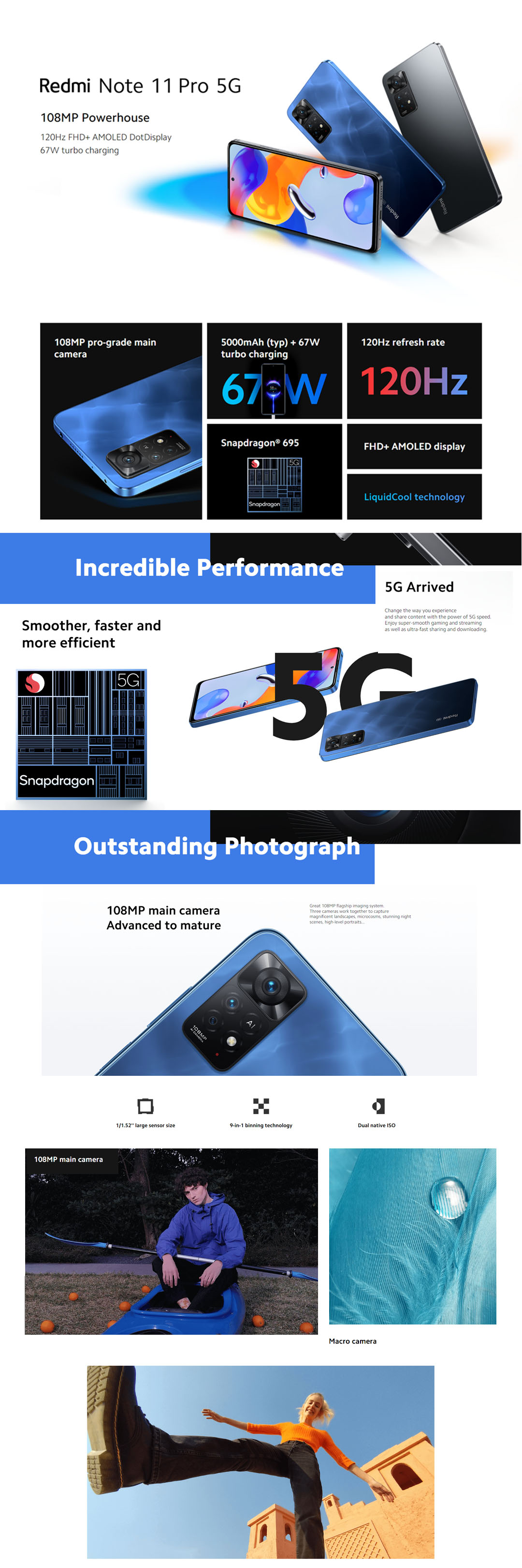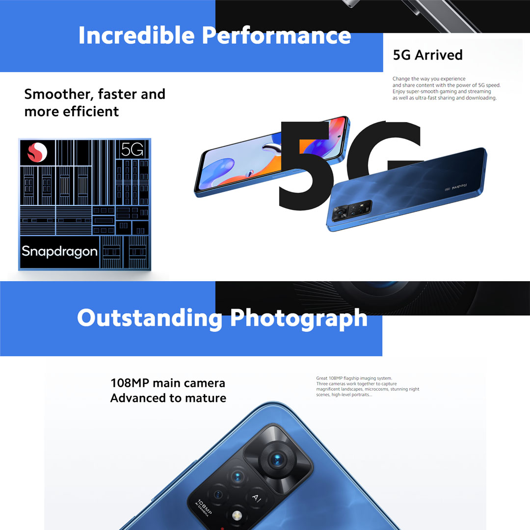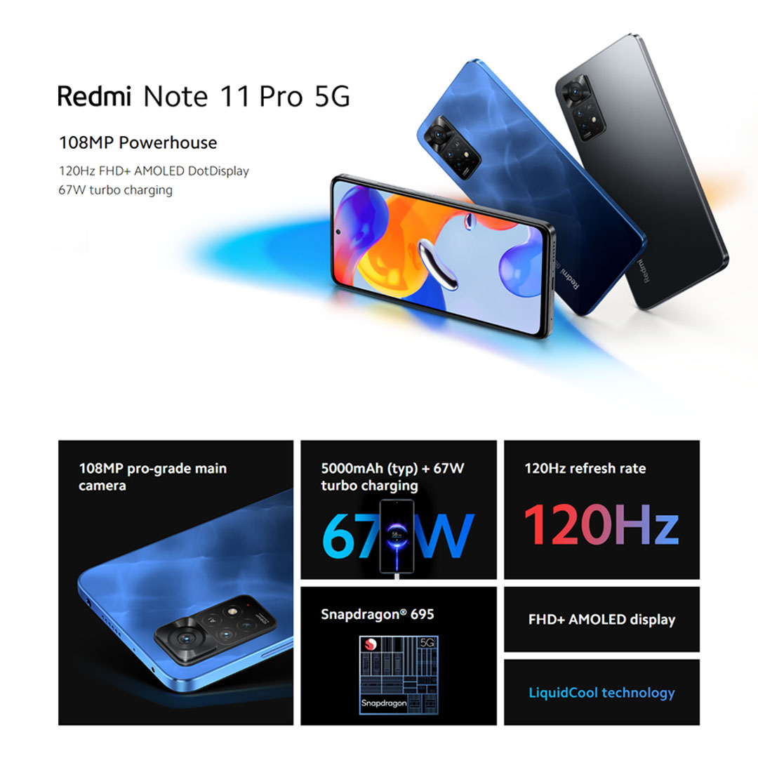 Xiaomi Redmi Note 11 Pro 5G | 8GB+128GB | 108MP Powerhouse | Snapdragon 695 | 67W Turbo Charging | 120Hz FHD+ AMOLED DotDisplay | Smartphone with 1 Year Warranty