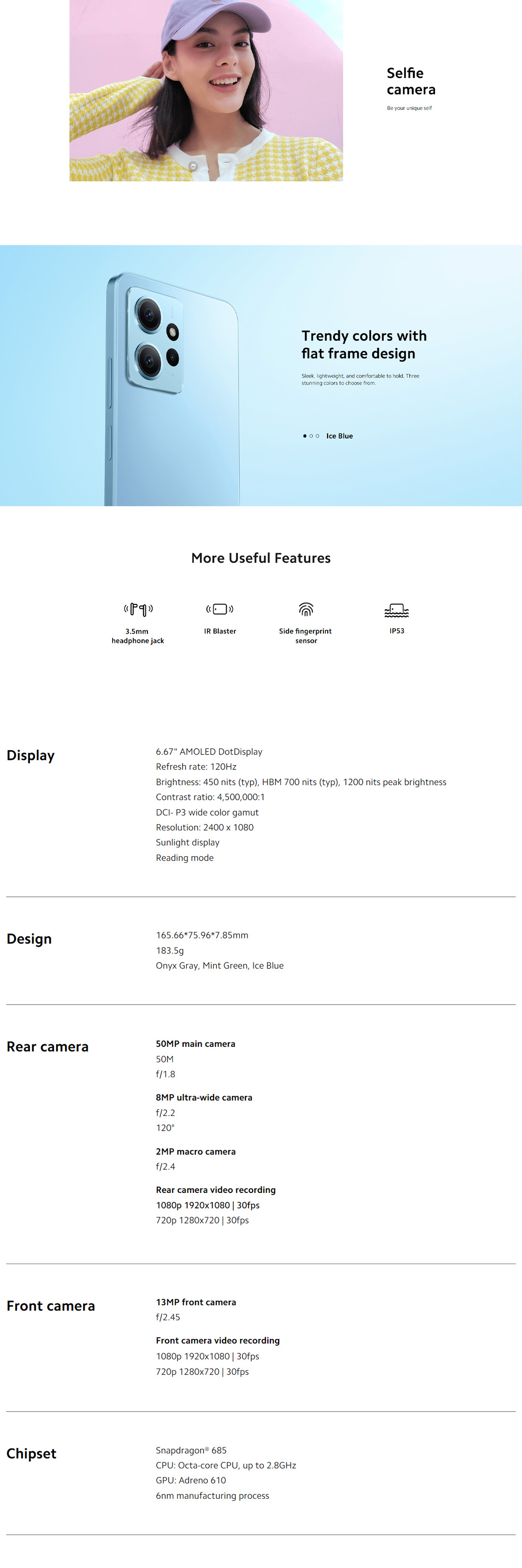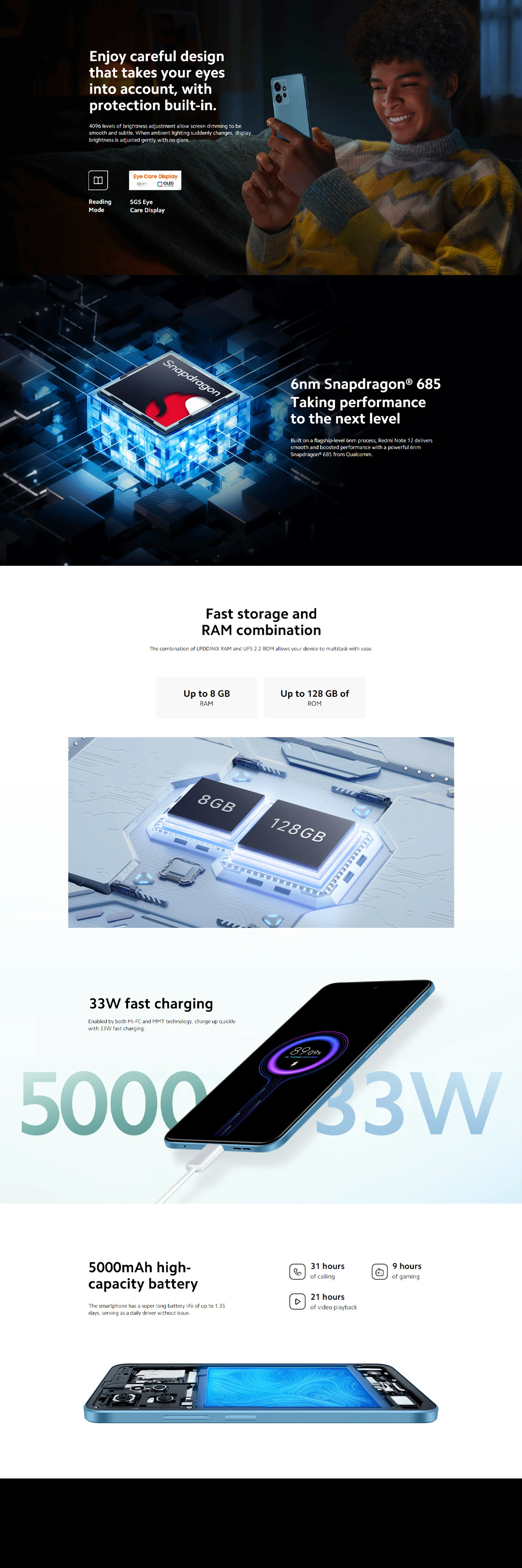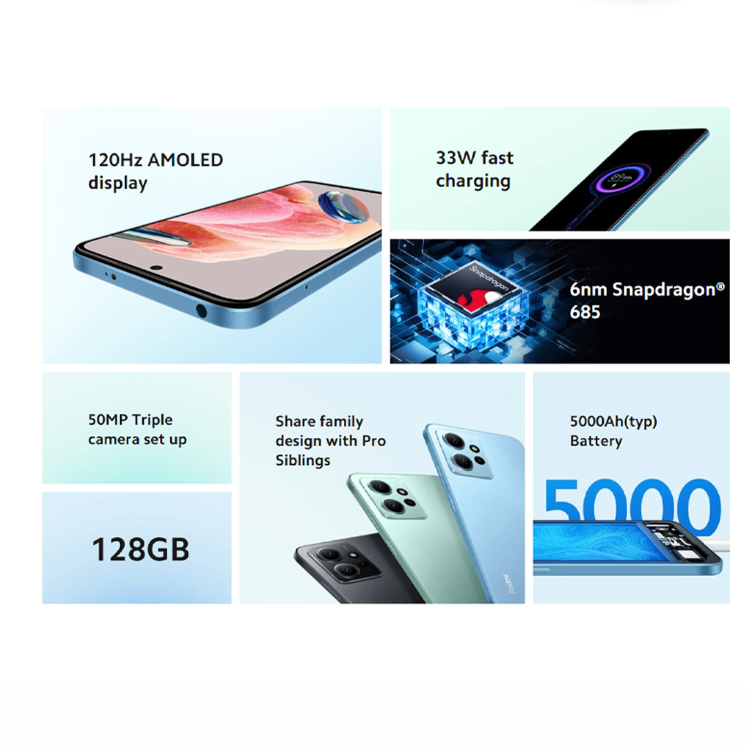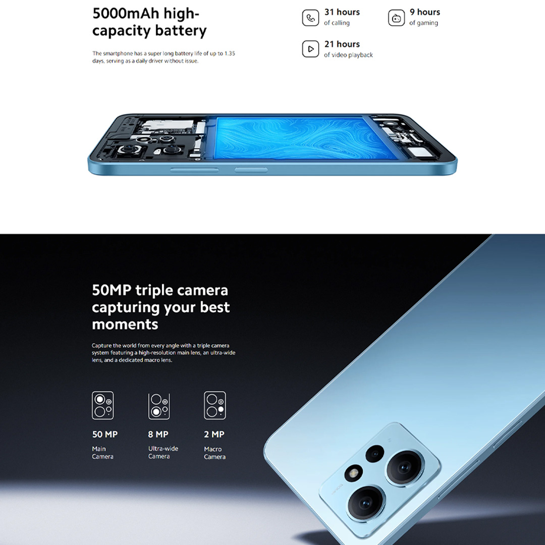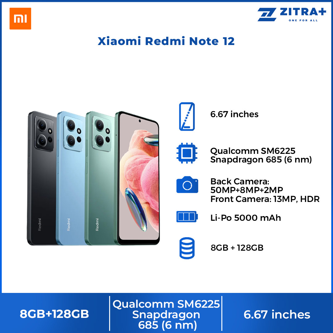 Xiaomi Redmi Note 12 | 8GB+128GB | Android 13 | Fingerprint Sensor | AI Face Unlock | Bluetooth 5.0 | Accelerometer | Reading Mode | Sunlight Display | Smartphone with 1 Year Warranty